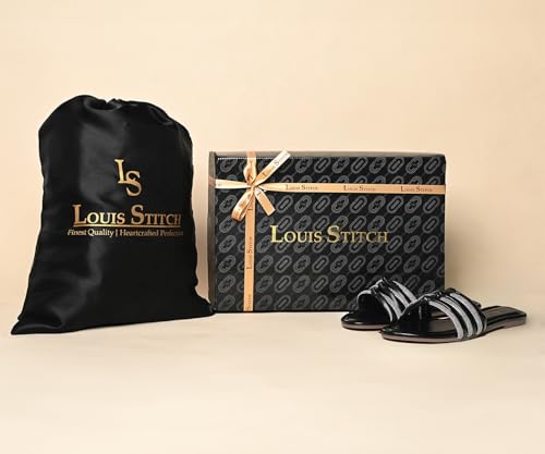LOUIS STITCH Women's Fashion Flat Slip On Sandals | Open Toe Black Stylish Flat Sandal for Ladies, Comfortable All day Wear Slipper | LSOF-LDSL-GLTSJB | (UK-3)
