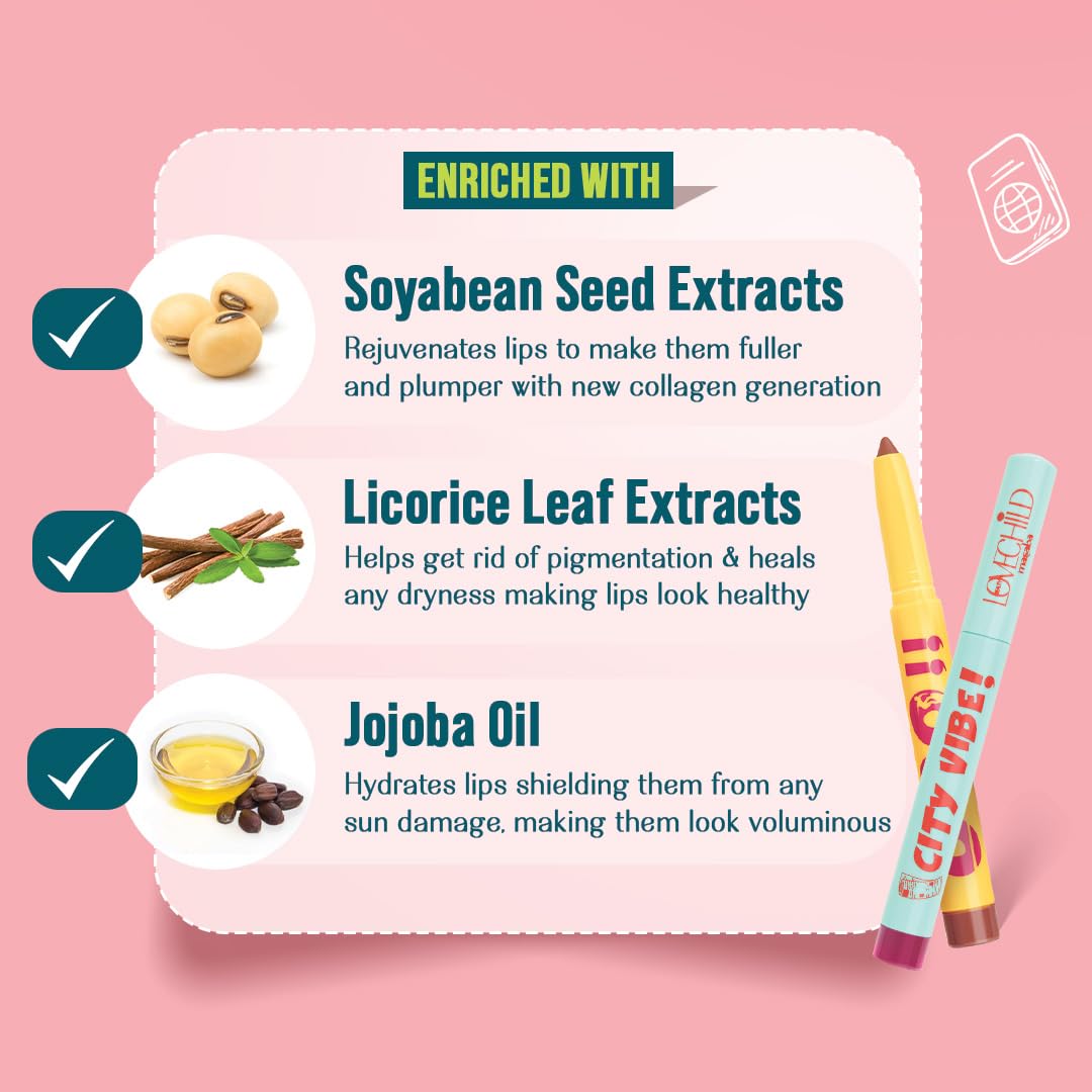 Lovechild Masaba Passport to Plump Lip Crayon | Hydrated Matte Finish | Transfer Proof | City Vibe! (Magenta), 1.4gm