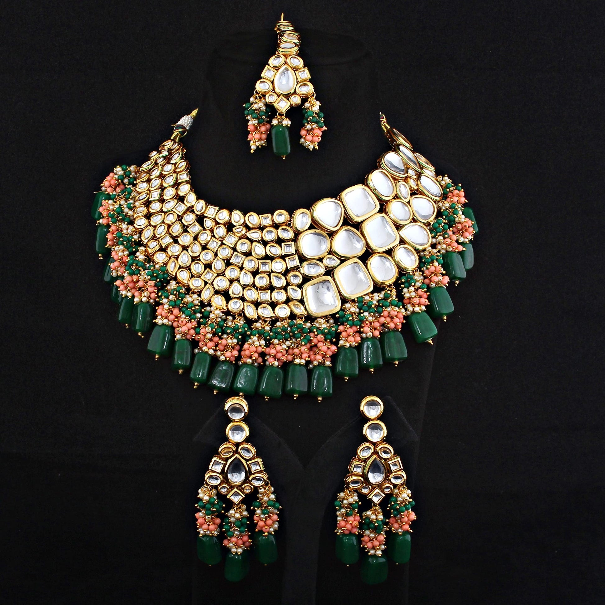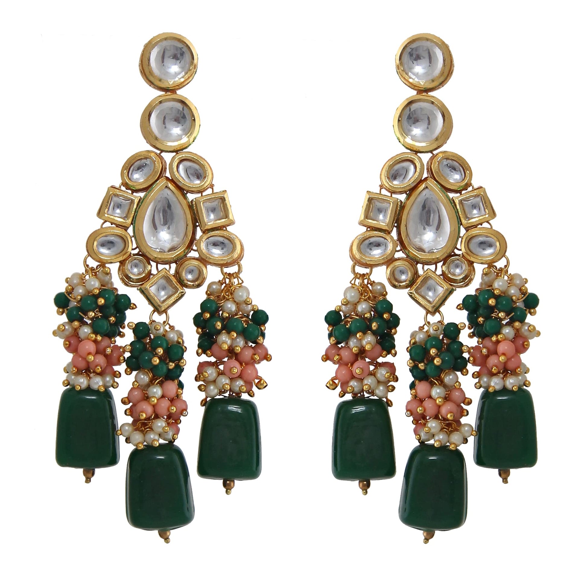 Lucky Jewellery 18K Gold Plated Multicolor Kundan Stone/Uncut Kundan/Dibbi Kundan/Meena Kundan/Lucknow Kundan with Tumble Drop Bridal Set for Girls & Women (8656-M4SK-1568-WPHG)