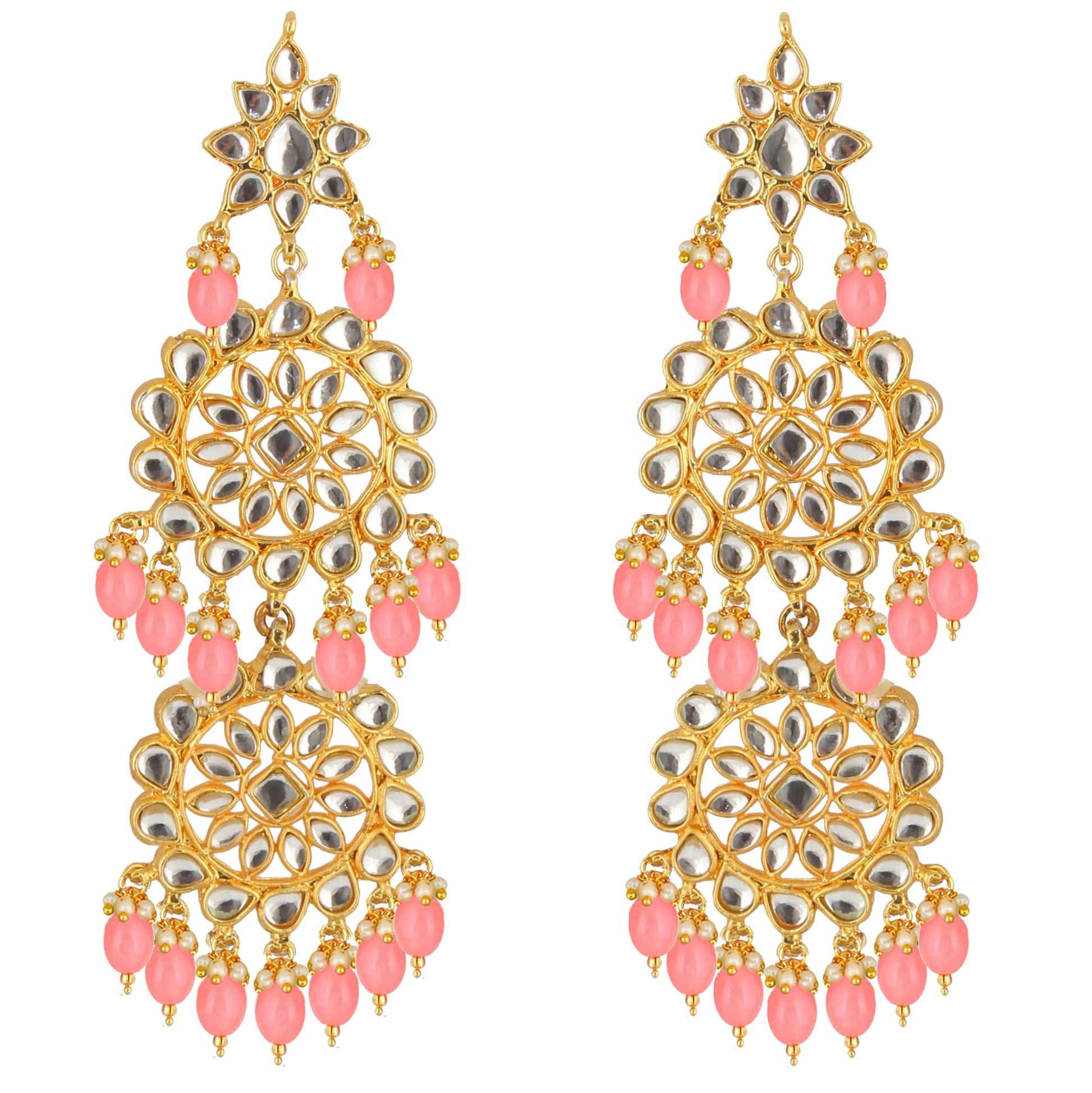 Lucky Jewellery Designer Gold Plating Peach Color Pearl with Kundan Choker Bridal Dulhan Necklace Set For Girls & Women (4200-QSK-580-PH)