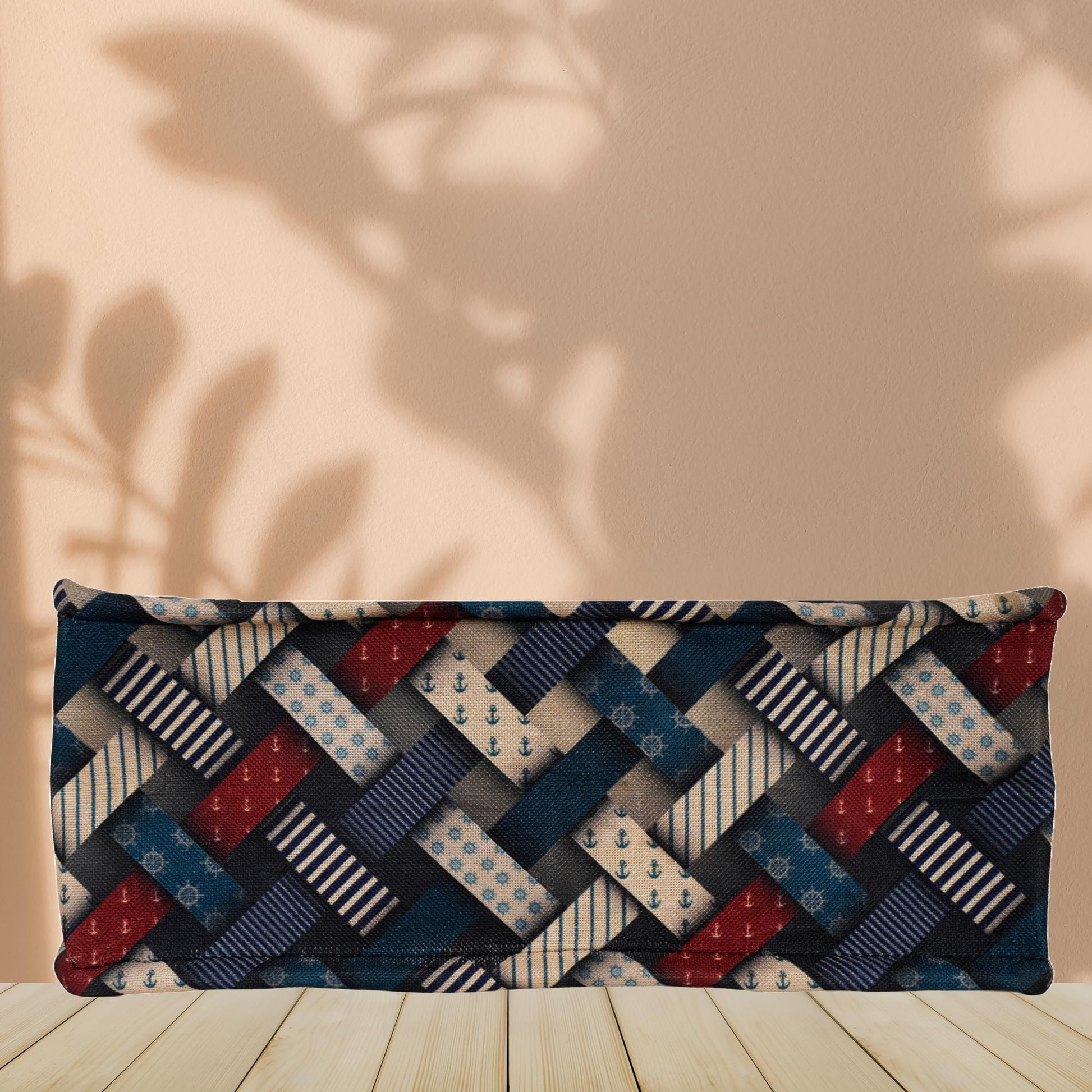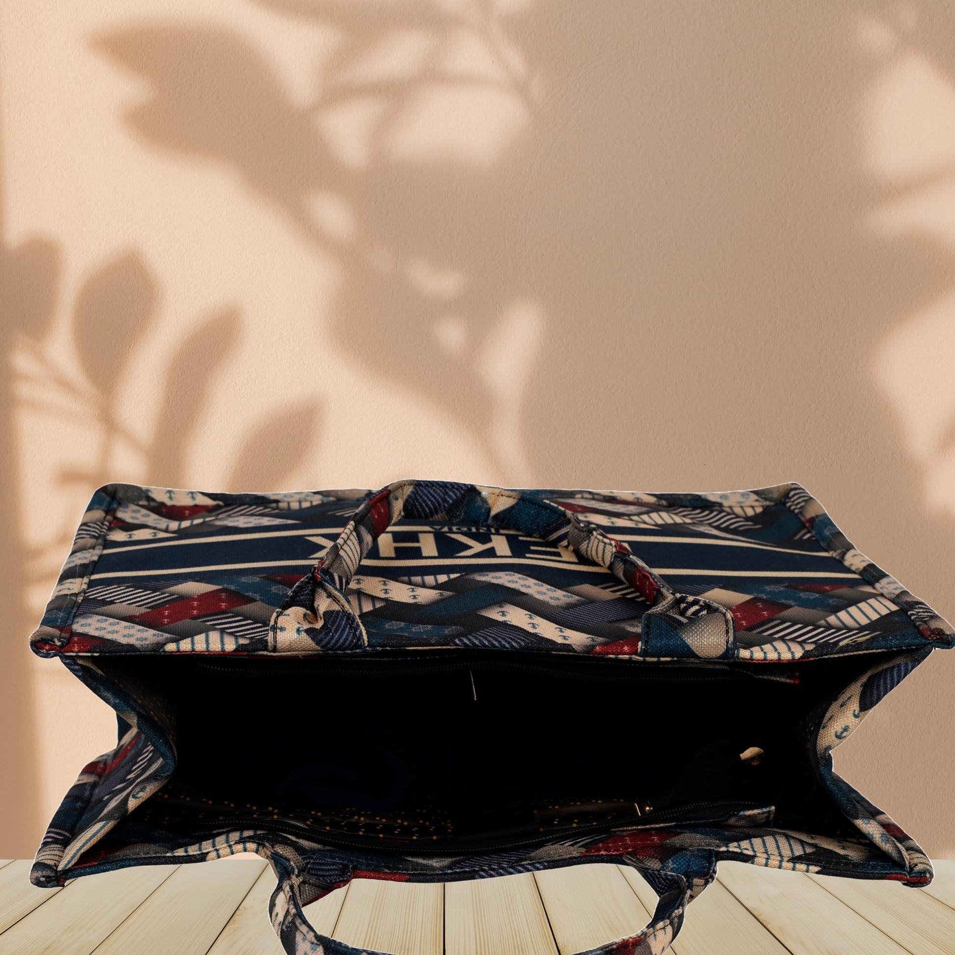LX LEKHX Designer Tote Bag for Women | Premium Laminated Jute Canvas Handbag with Geometric Print | Stylish Spacious Office, College, Travel & Laptop Bag (Fits 16 Inch) (Multicolor-Blue)