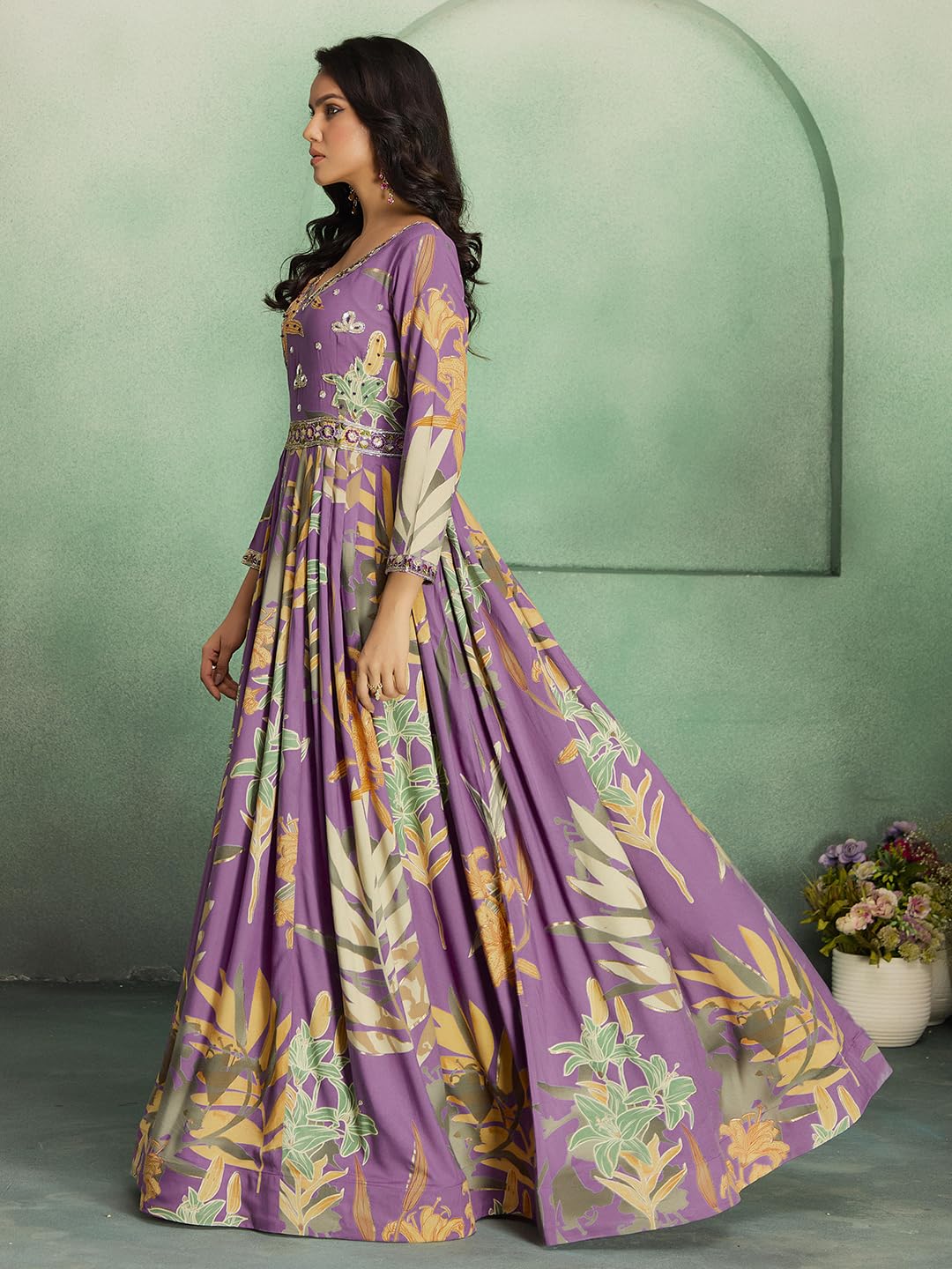 - Elegant and Stylish: Our women’s Maxi Long Style Gown features the Anarkali Full Long Gown Party Wear Gowns For Women's Latest design. The sleeves are Reguler Style And New Style V-Neck A Front-Slit Anarkali emanating from an Available in multiple sizes. Women's Anarkali Kurti is a perfect blend of elegance and style. The beautiful design and vibrant colors make it an ideal choice for any occasion.