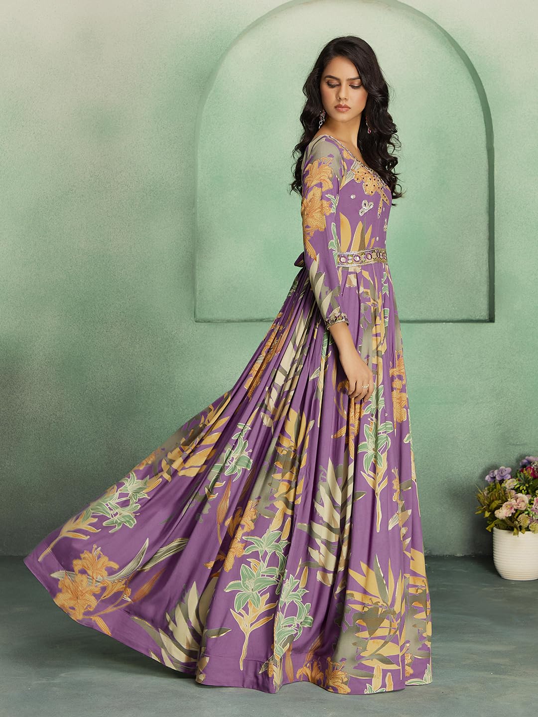- STAND OUT FROM THE REST: Keeping in mind the latest fashion trends, this designer Long Gown is made to help you make a bold fashion statement. The pink and multi-color long Gown dress for women's Latest Design pattern highlights the color of your choice which is accented further.