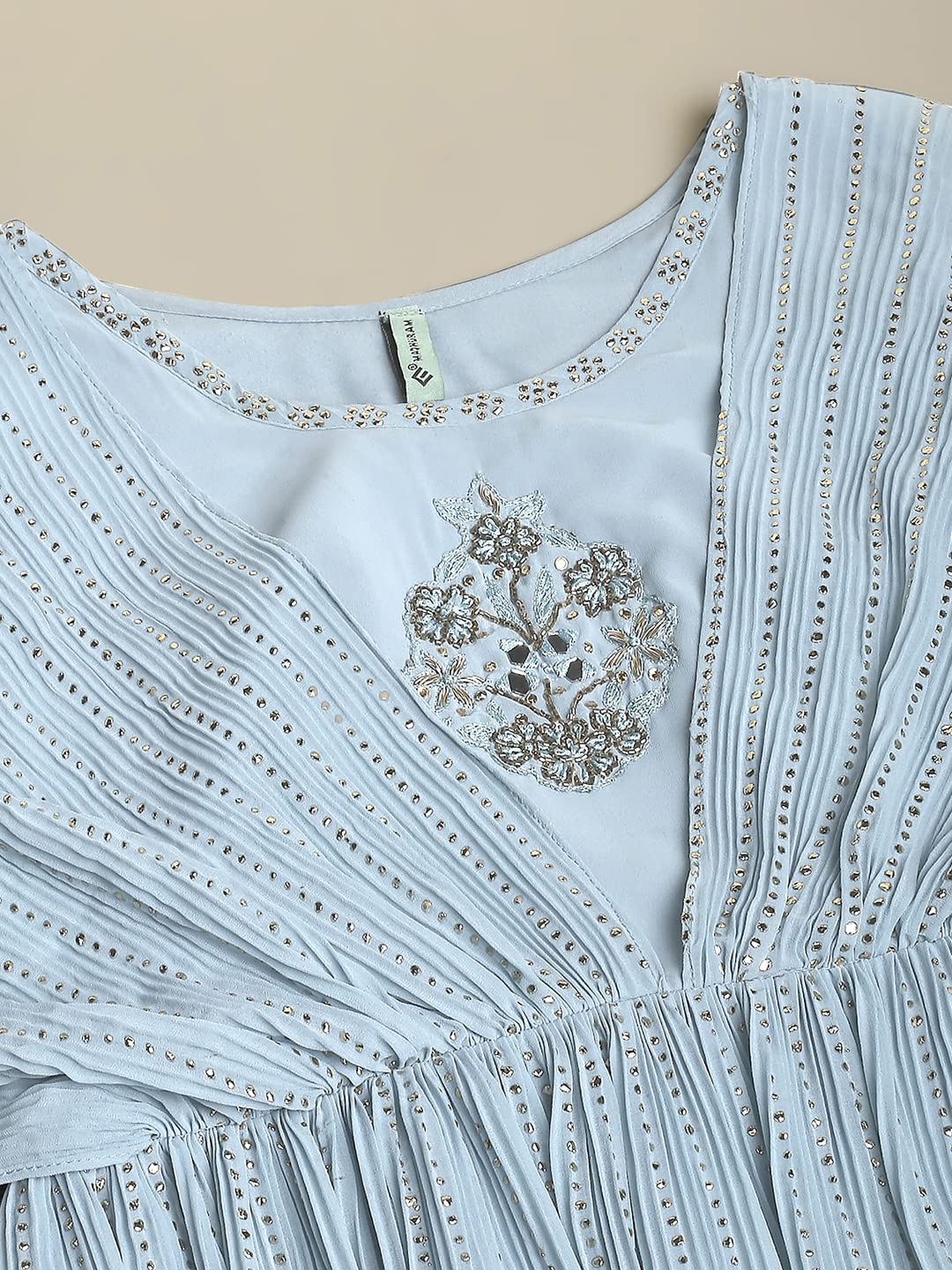- VERSATILE DRESS FOR ALL OCCASIONS: You can pair the Skye Blue Color Anarkali Georgette Gowns by Madhuram Textiles with the Skye Blue brighter of the palazzo, pants, or Jeans for a contrasting, stylish look. Excellent for everyday wear, office wear, ethnic occasions,Marrige parties, and birthday Gown for women And Girls.
