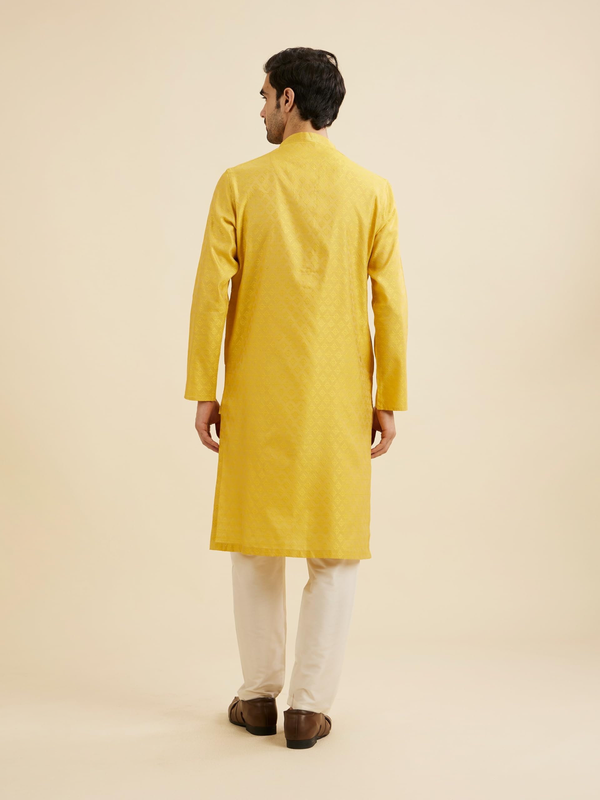 - Design: Radiate elegance with this mustard yellow buta diamond patterned kurta set for men. The intricate diamond buta pattern brings a touch of sophistication, while the rich mustard hue ensures a commanding presence. Team it up with classic tan loafers and a matching stole to elevate your look for any festive occasion.