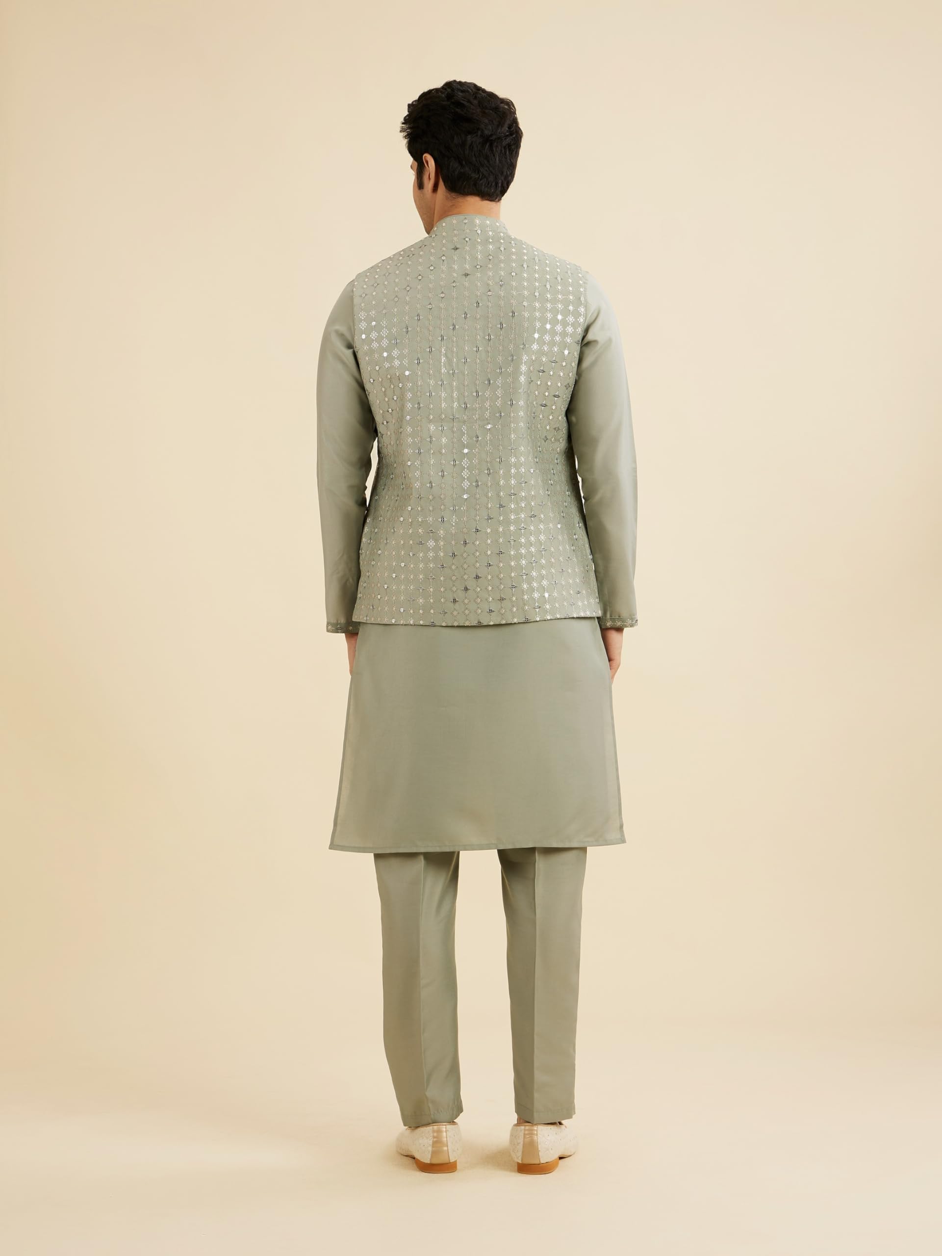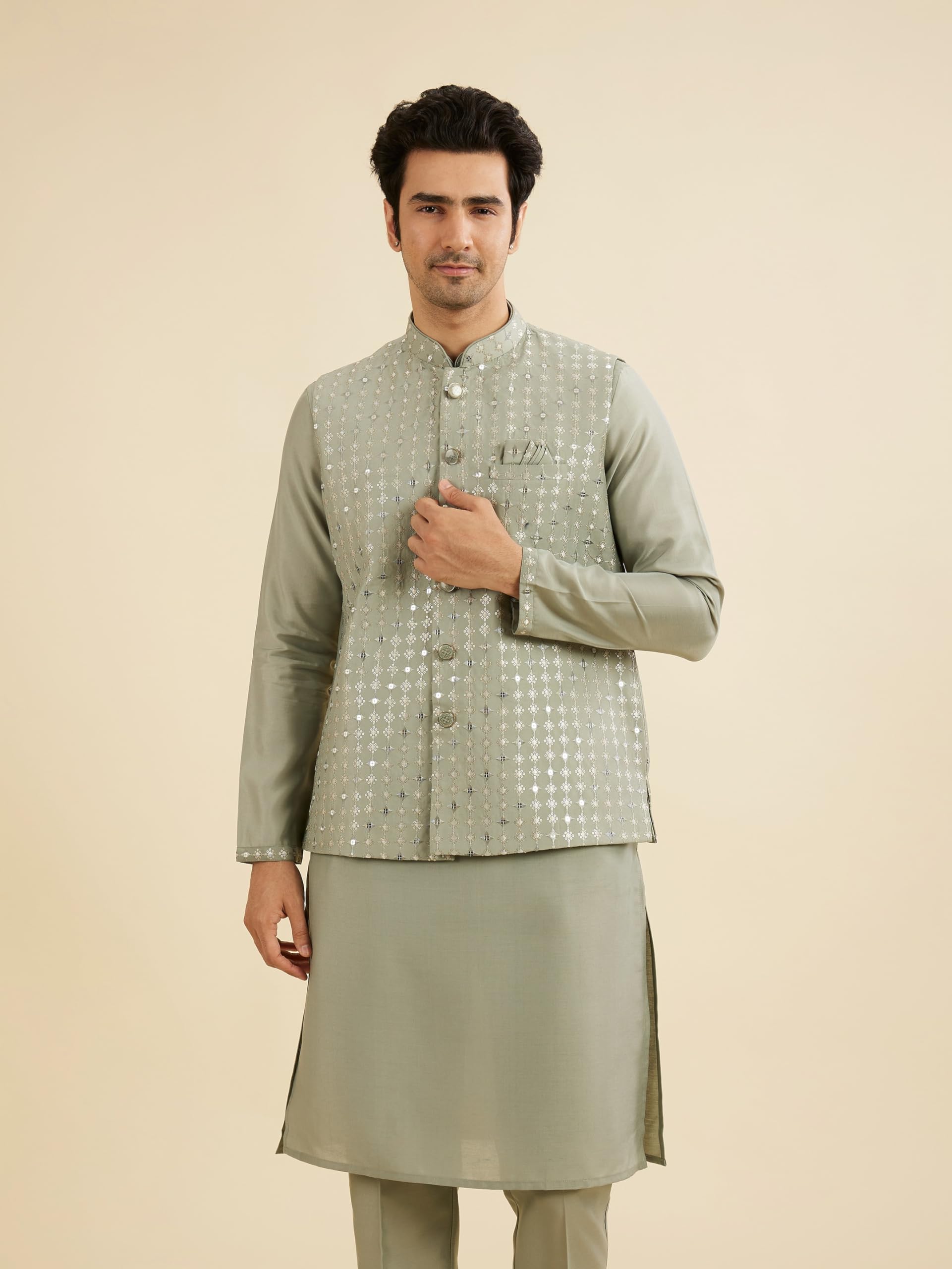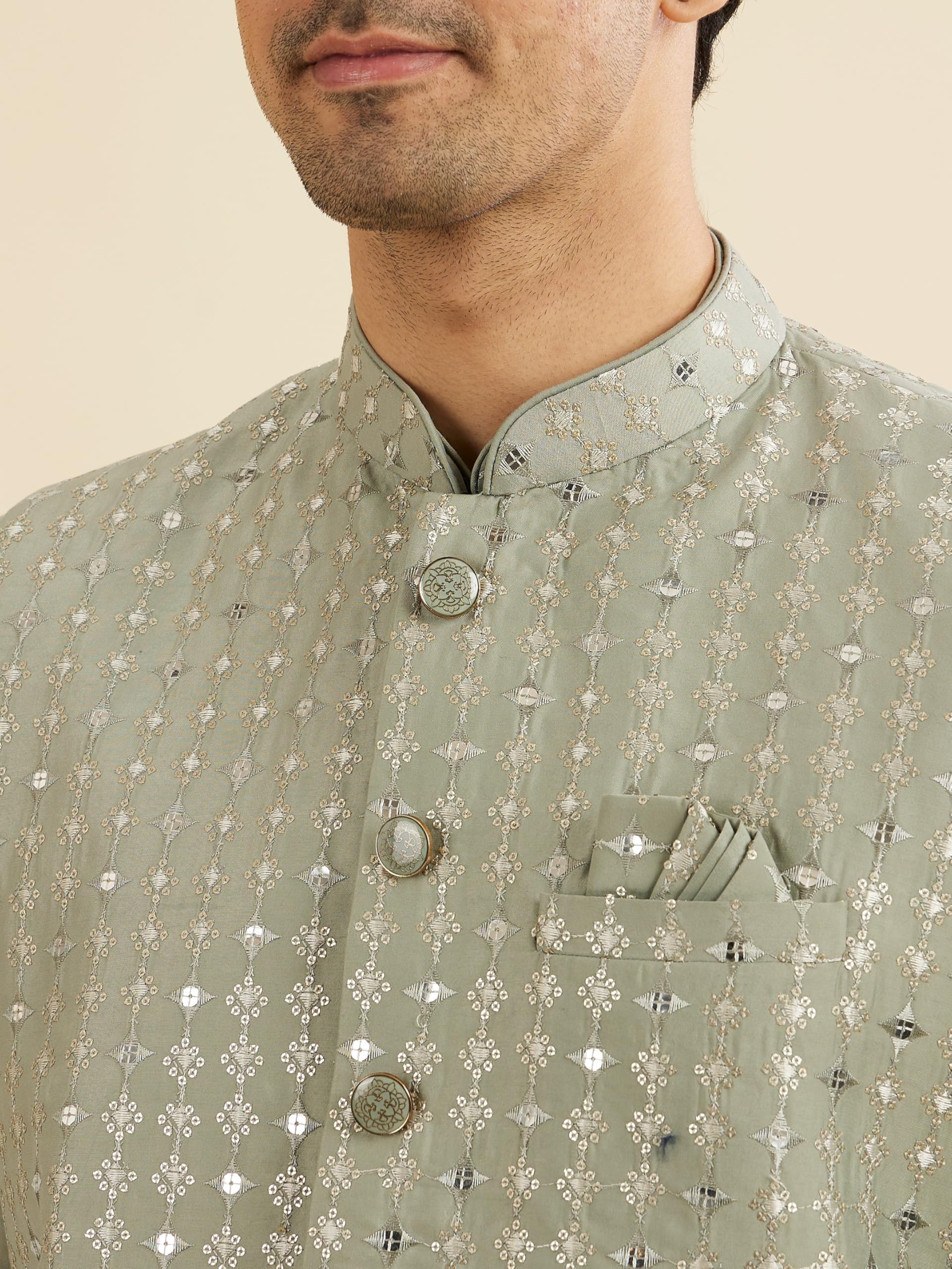 Manyavar Men's Art Silk Embroidery|Sequin Work Kurta Jacket Set (Light Mid Green,S)