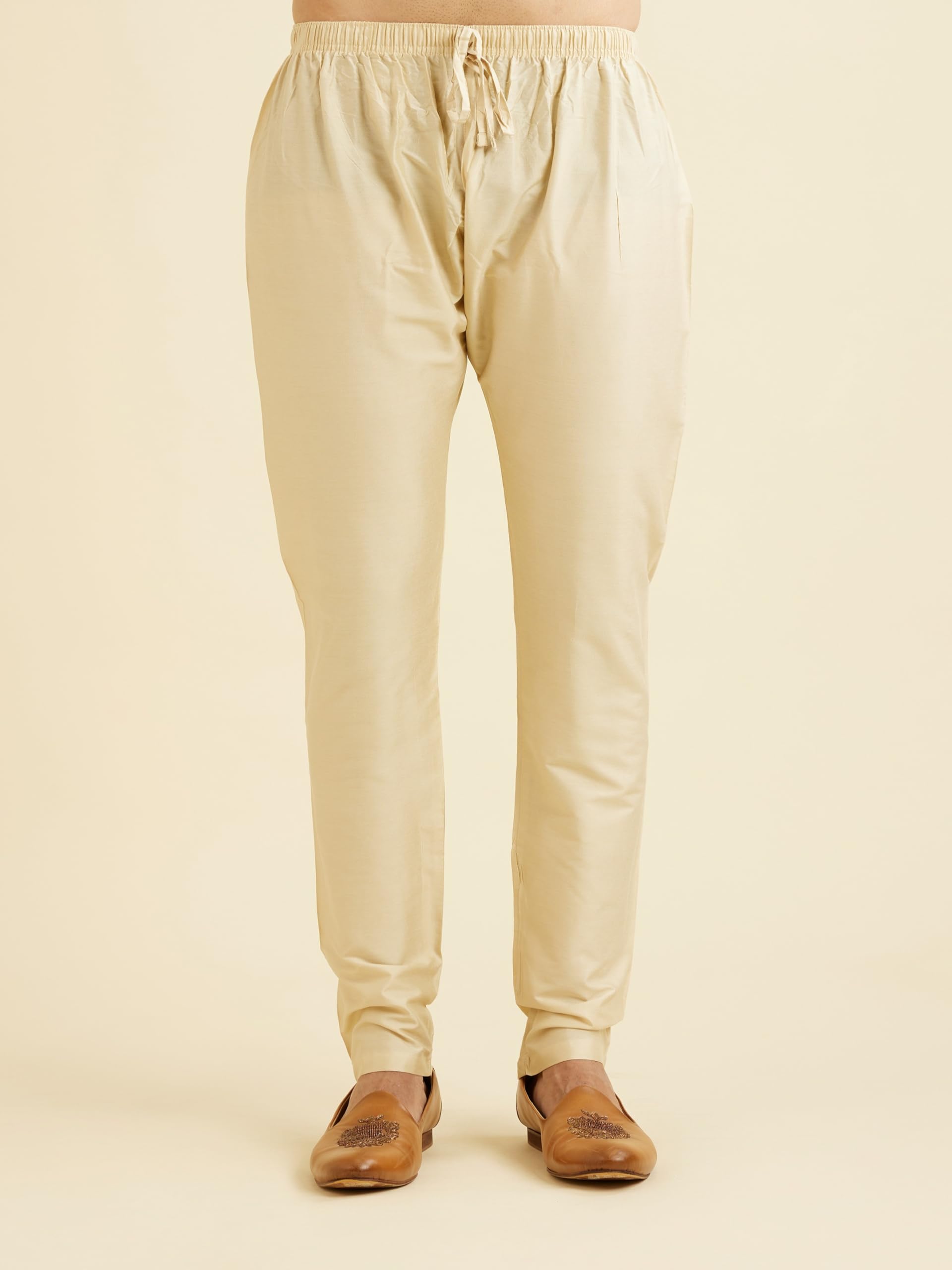 Manyavar Men's Art Silk Printed Kurta Pyjama Set (Beige,XXL)