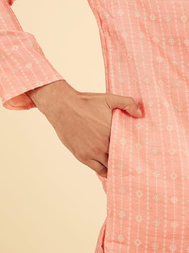 Manyavar Men's Art Silk Sequined Placket Printed Festive Kurta Set (Peach,M)
