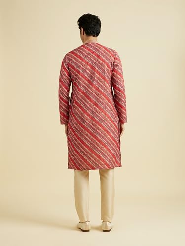 Manyavar Men's Cotton Blend Diagonal Print Kurta Pyjama Set (Orange,M)