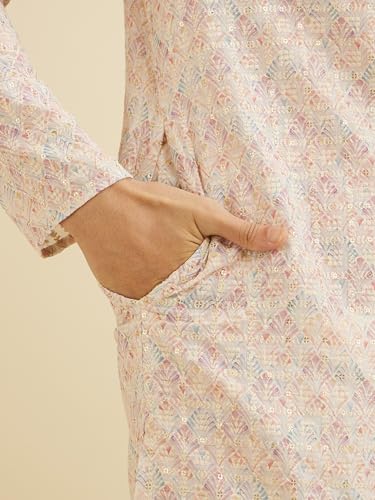 Manyavar Men's Cotton Blend Digital Print|Embroidery Kurta Set (Pink,S)