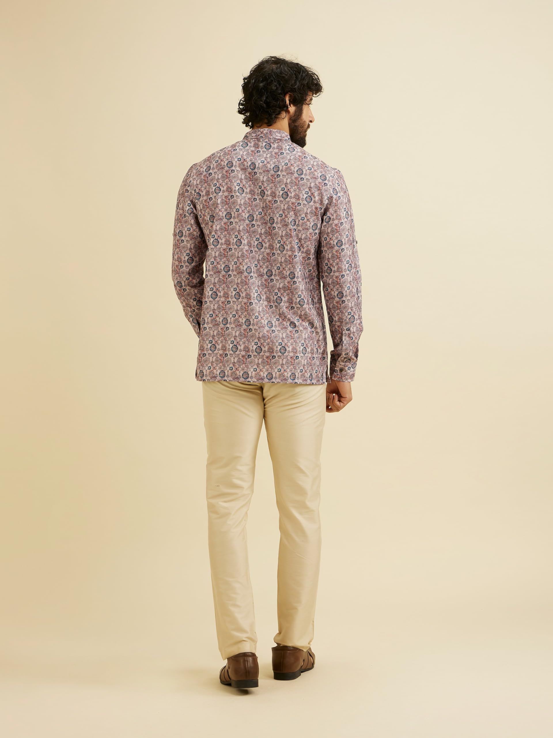 Manyavar Men's Cotton Blend Digital Print Short Kurta (Peach,XL)