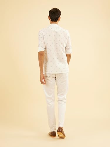 Manyavar Men's Cotton Blend Printed High Neck Short Kurta (White,XXXL)