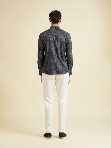 Manyavar Men's Cotton Blend Printed Short Kurta(Dark Grey,XXXL)