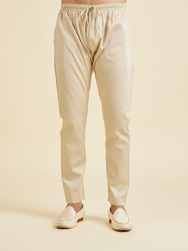 Manyavar Men's Cotton Solid Kurta Set (Natural,S)