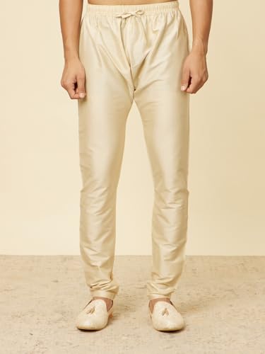 Manyavar Mens Cream Brocade Printed Kurta Pyjama Set
