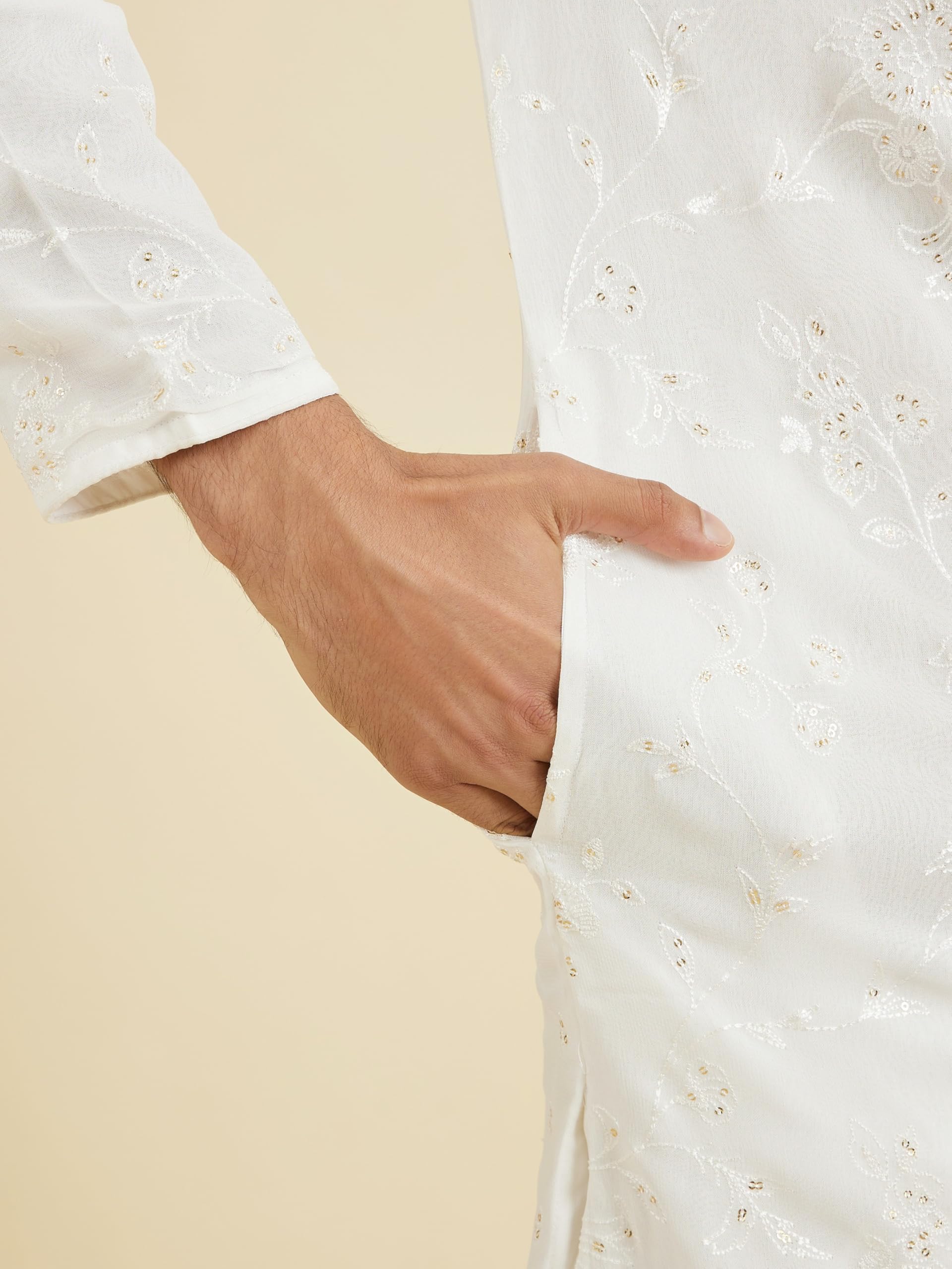 Manyavar Men's Georgette Floral Threadwork & Sequinned Kurta Churidar Set (2pcs)