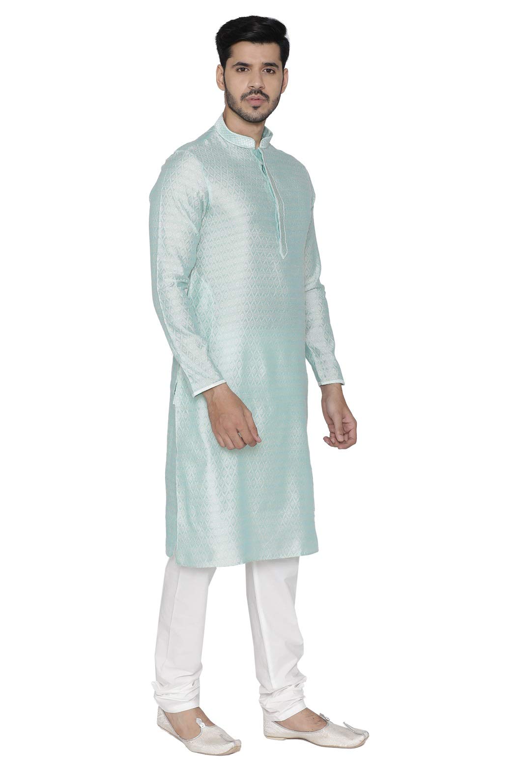 Manyavar Men's Silk Blend Other Kurta Pyjama (CPOSK433_Aqua Blue_XL)