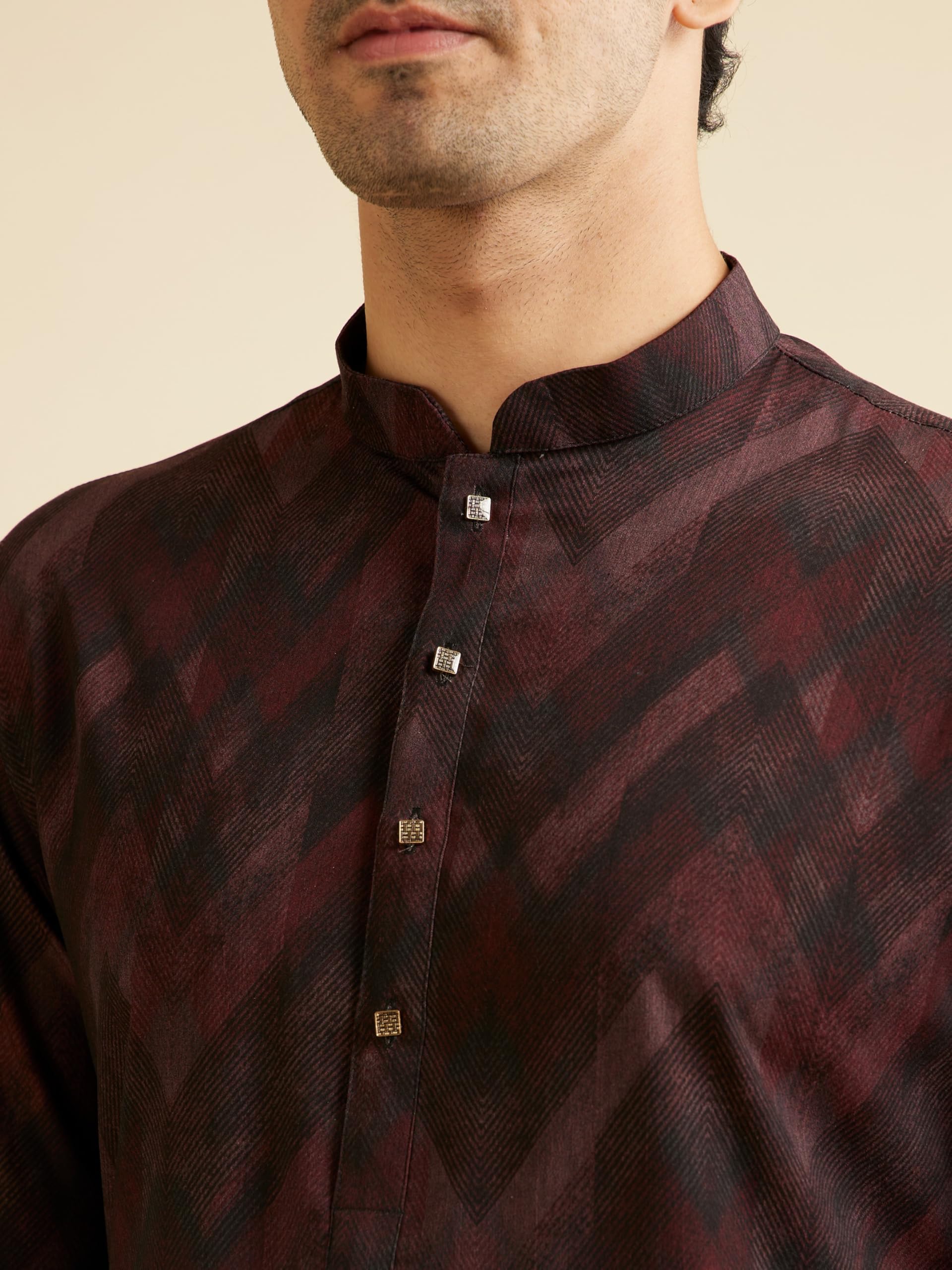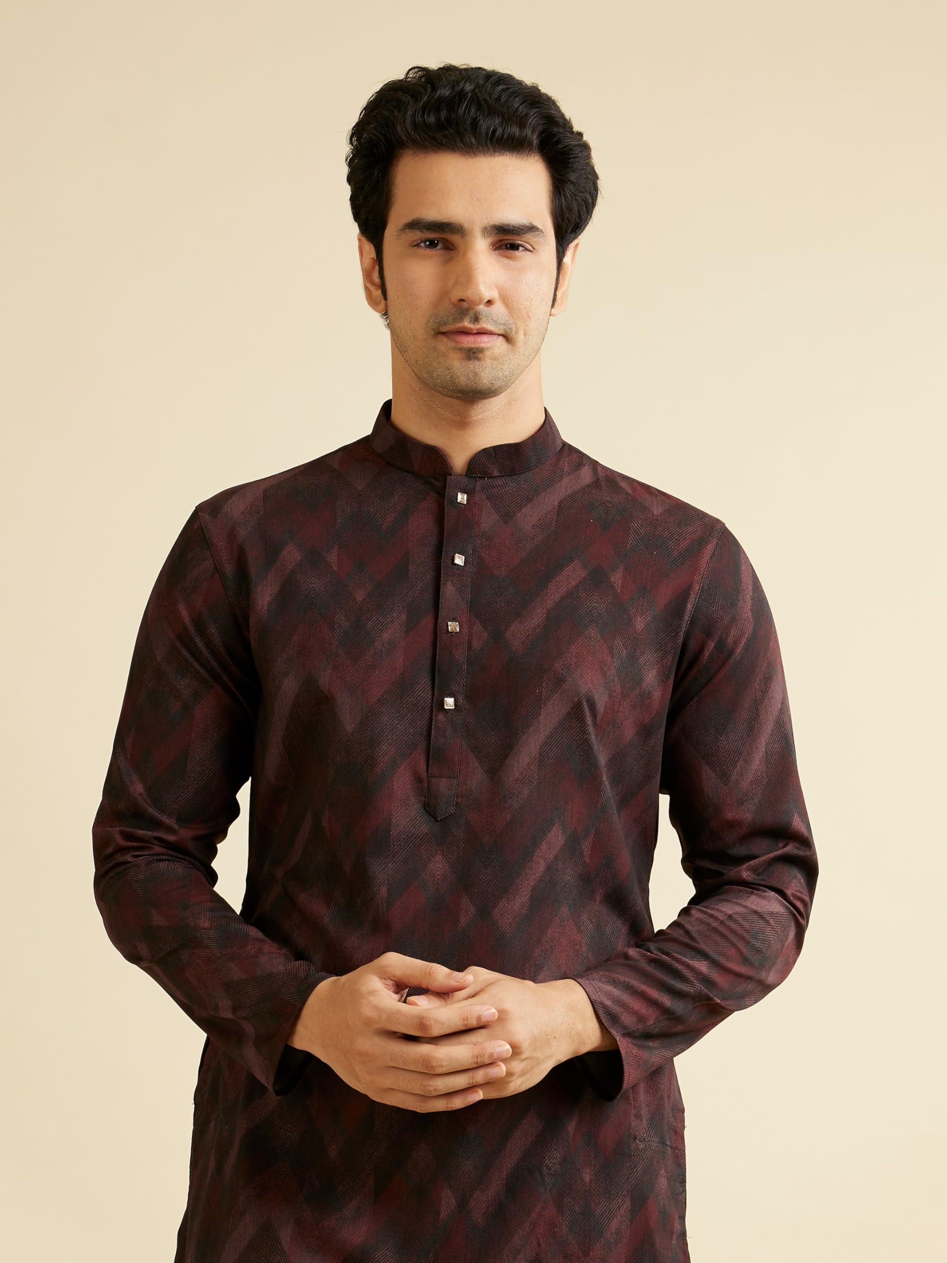 - Design:-Enhance your ethnic wardrobe with our dark maroon chevron patterned kurta for men. Crafted from premium fabric, this kurta features a striking chevron pattern that blends traditional elegance with modern style. The rich maroon hue adds a touch of sophistication, making it perfect for festive occasions and family gatherings. Pair this kurta with cream-colored churidar pants and classic mojari shoes for a polished and stylish look.