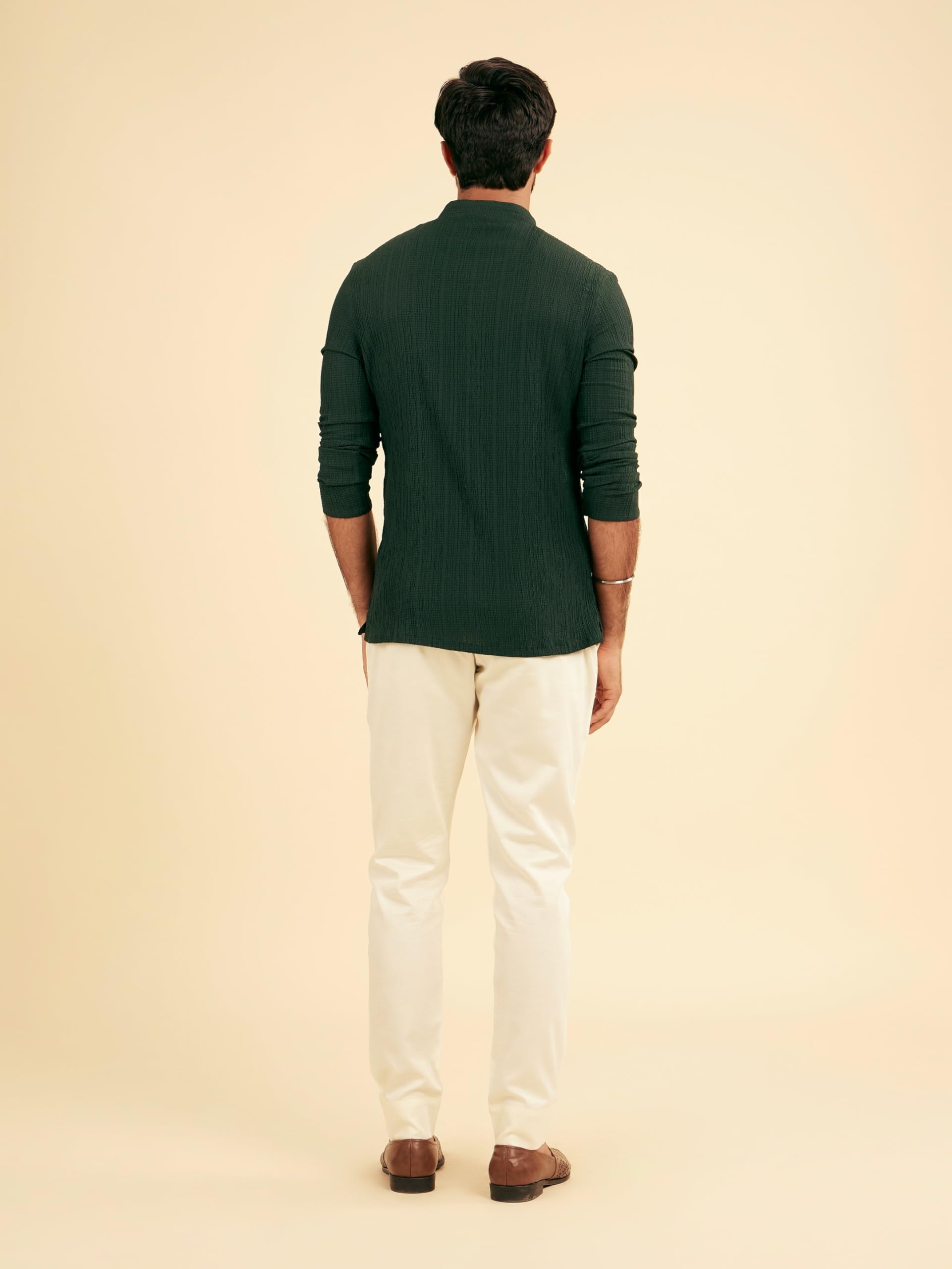Manyavar Men's Spandex Textured Short Kurta (Dark Green,XXL)