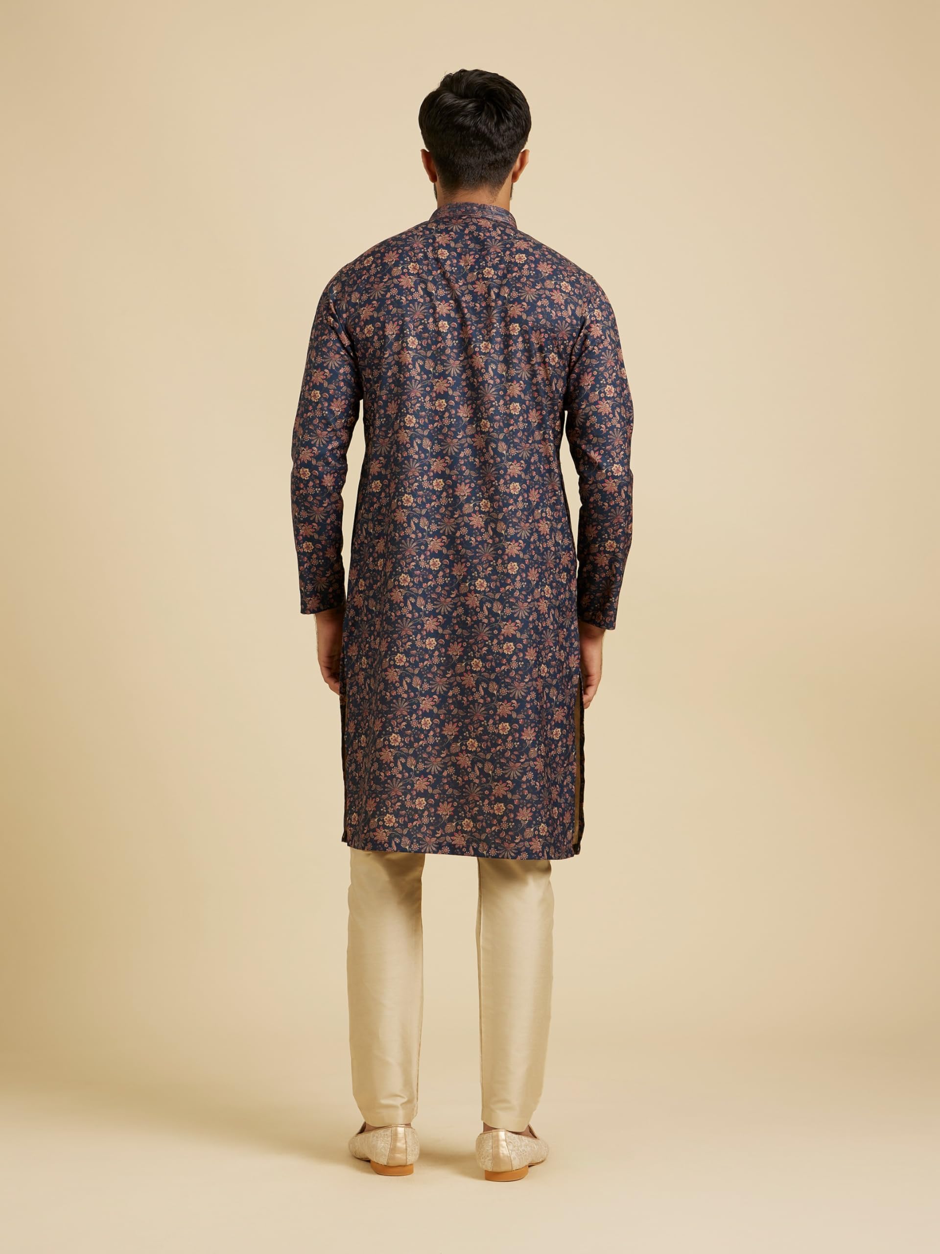 Manyavar Men's Viscose Blend Floral Print Kurta Pyjama Set (Blue,L)