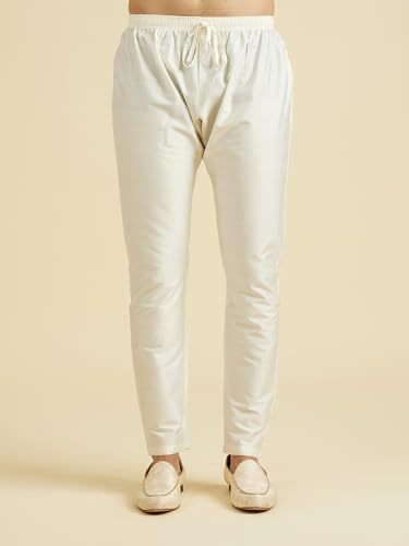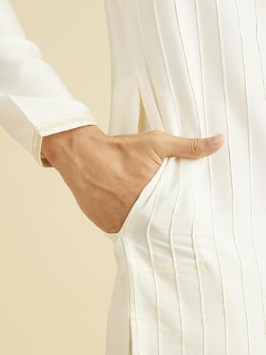 Manyavar Men's Viscose Blend Self Design Kurta Pyjama Set (Warm White,XXL)