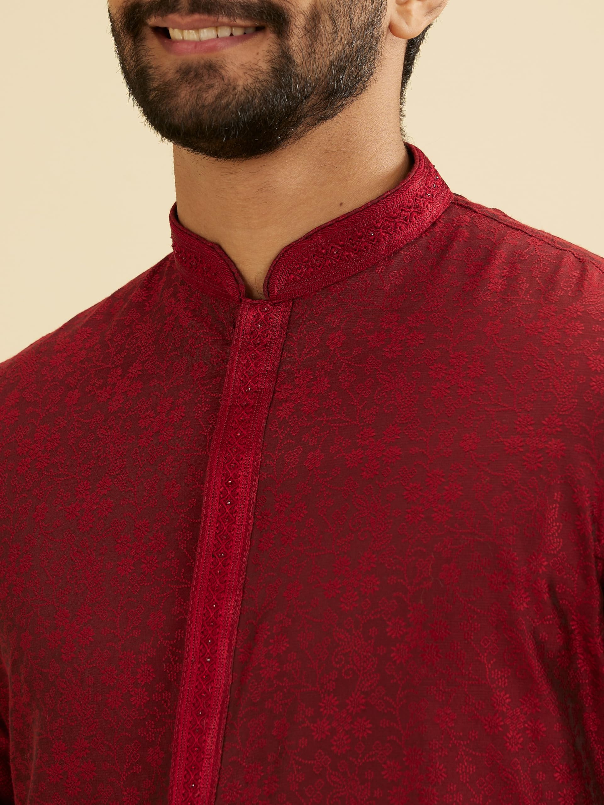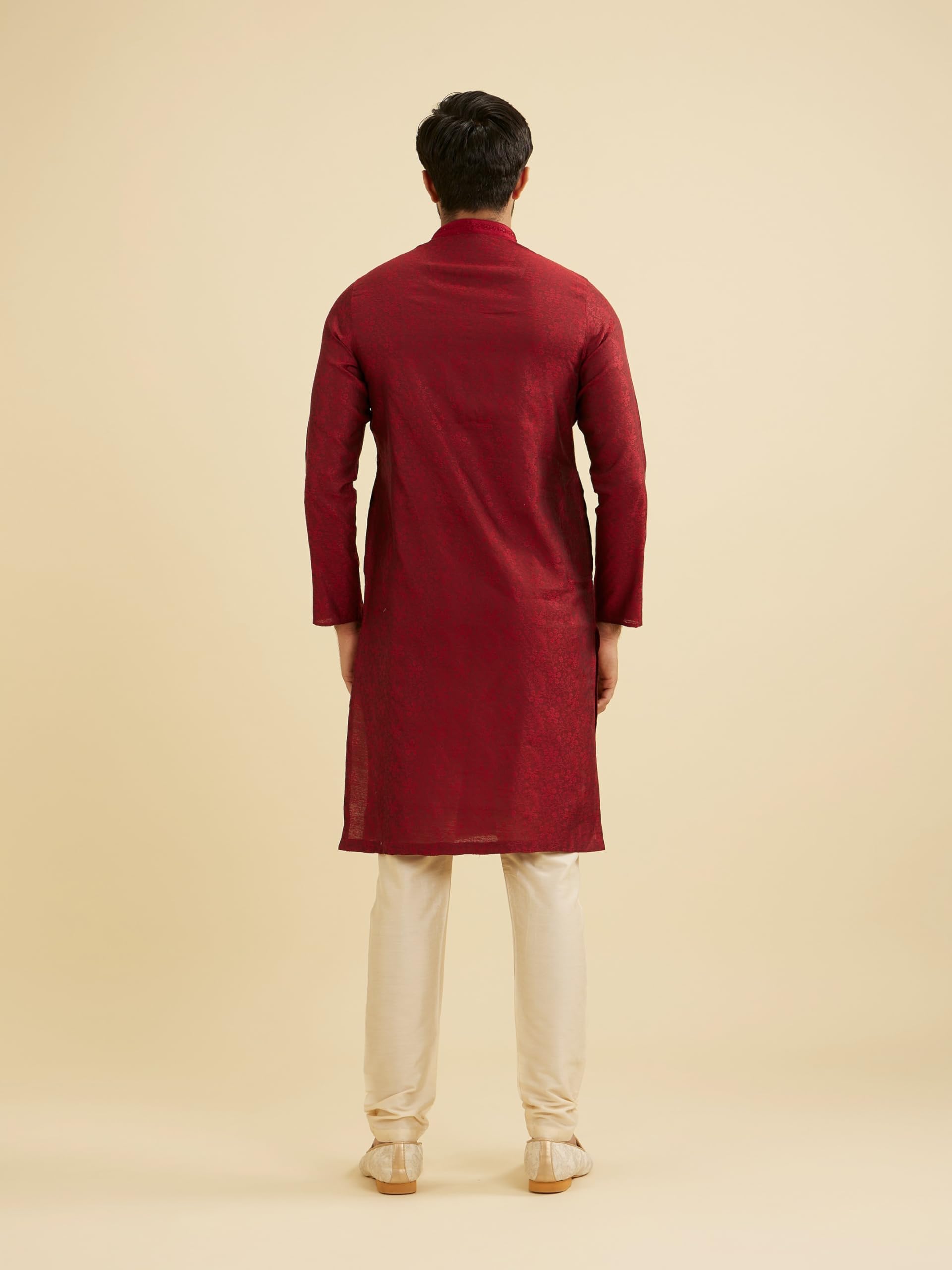 - Design:- Drape yourself in timeless elegance with this maroon red kurta set, adorned in classic bel buti patterns that bring out rich, intricate detailing. The deep maroon shade speaks volumes of sophistication, while the delicate pattern adds a subtle texture, making it perfect for festive occasions or grand gatherings. Styled with comfortable churidars, this set is the perfect blend of comfort and class. Style it with a pair of tan mojaris and a sleek watch for an effortlessly regal look.