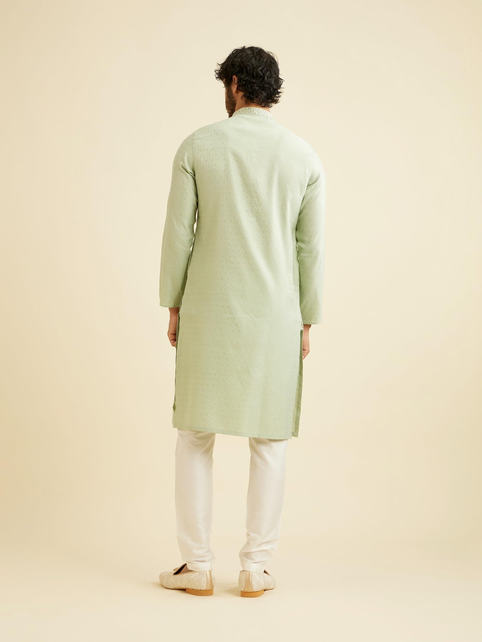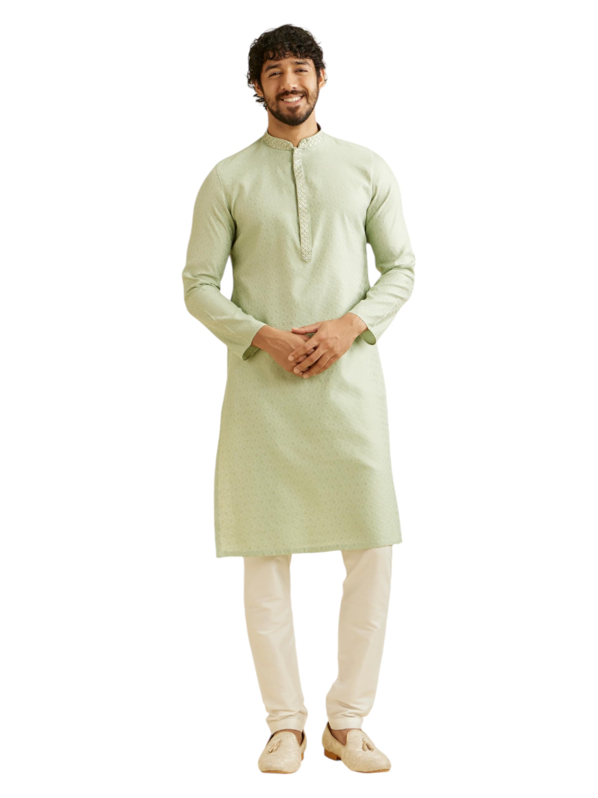 - Design:-Embrace elegance with our soft green floral patterned kurta set for men. The subtle green hue, adorned with delicate floral motifs, creates a refined and refreshing look. Perfect for both casual and semi-formal occasions, it pairs beautifully with beige or white trousers. Complete the look with matching moccasins or juttis for a chic, polished finish.