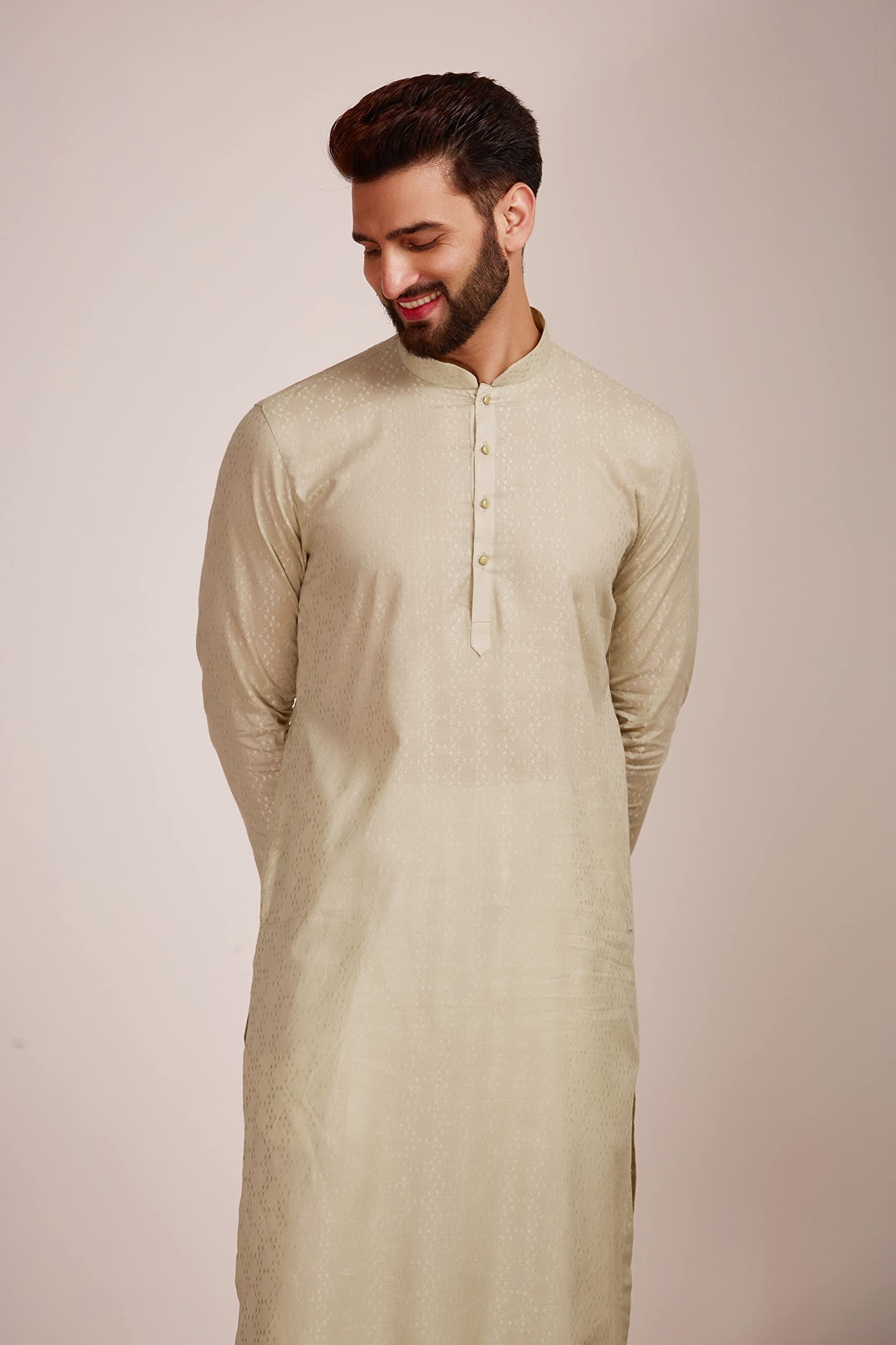 - Our 'Emerald Elegance Kurta Pajama' is an exquisite ensemble of sophistication and tradition. Crafted in pure cotton for ultimate comfort, this pista green piece is ideal for adding a classy touch to your festive or wedding attendee attire. Now, make every occasion extra special and memorable. Note: ensemble includes Kurta and Pyjama.