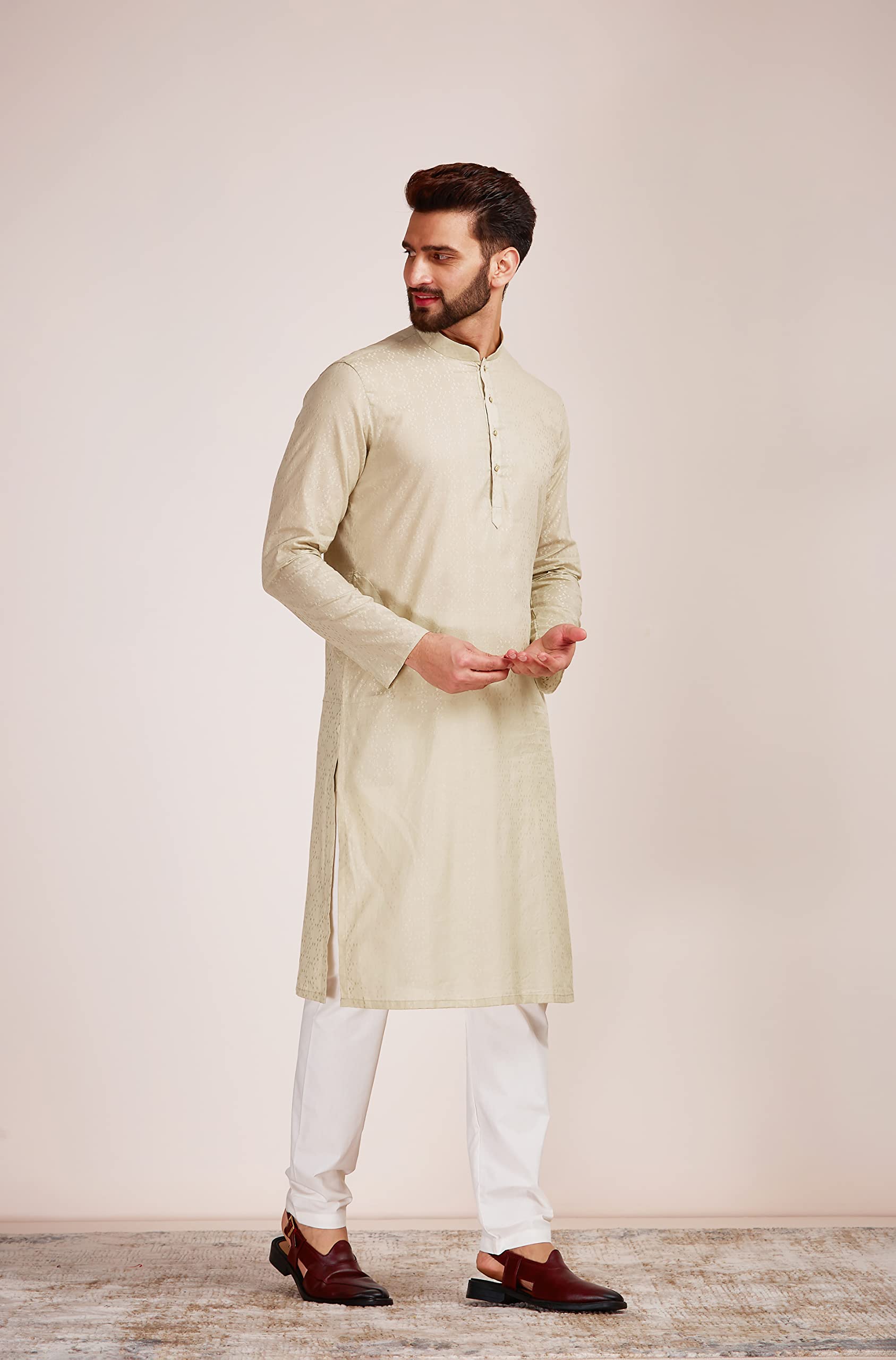 Manyavar Pista Cotton Full Sleeve Kurta Set | Traditional Kurta Set For Men (M)