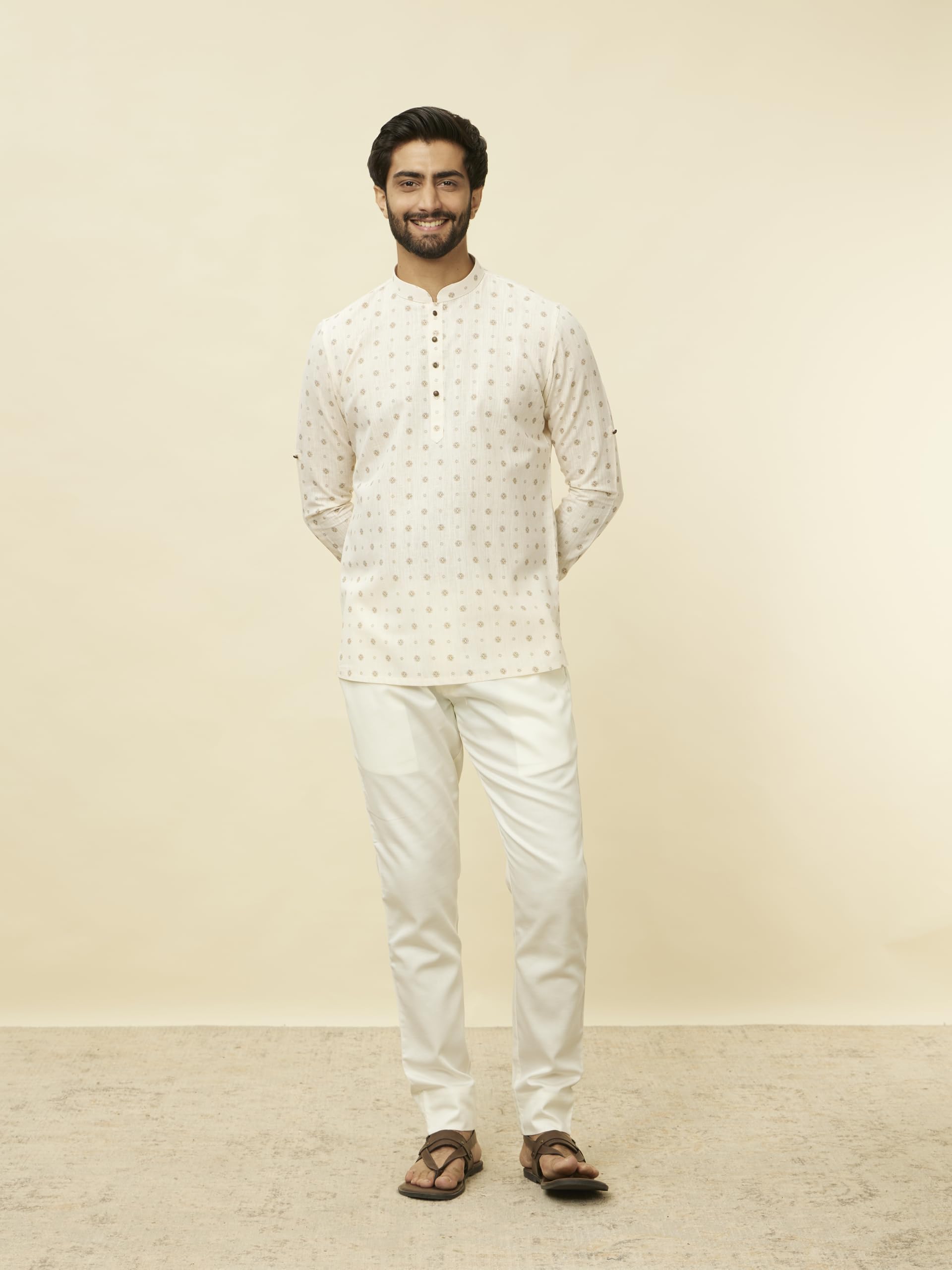 Manyavar Printed Casual Full Sleeves Short Kurta for Men - (Beige, Large)