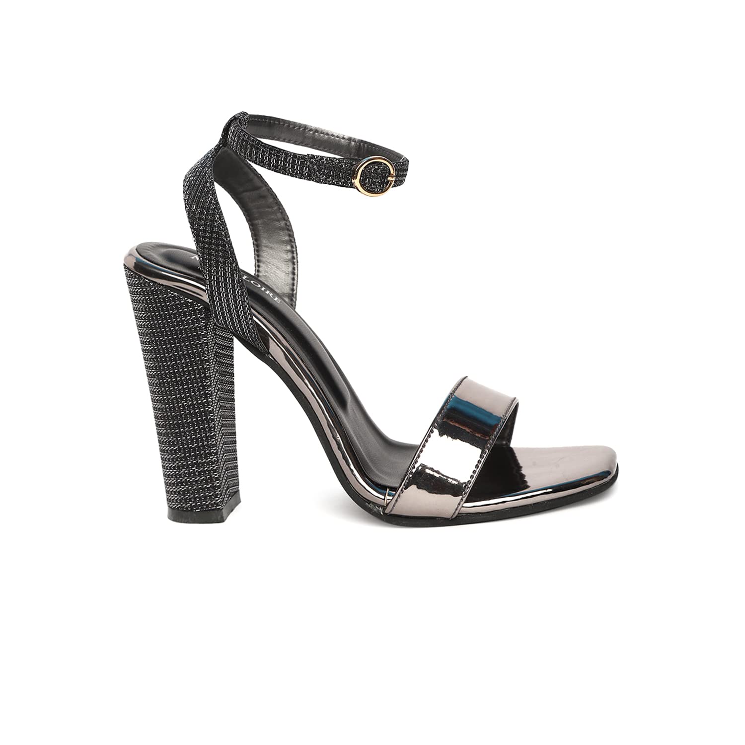 Marc Loire Women's Gun Metal Leather Comfortable Block Heel Sandals for Party Occasions, 5 UK