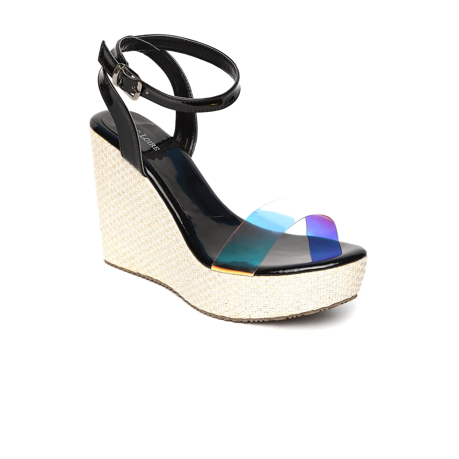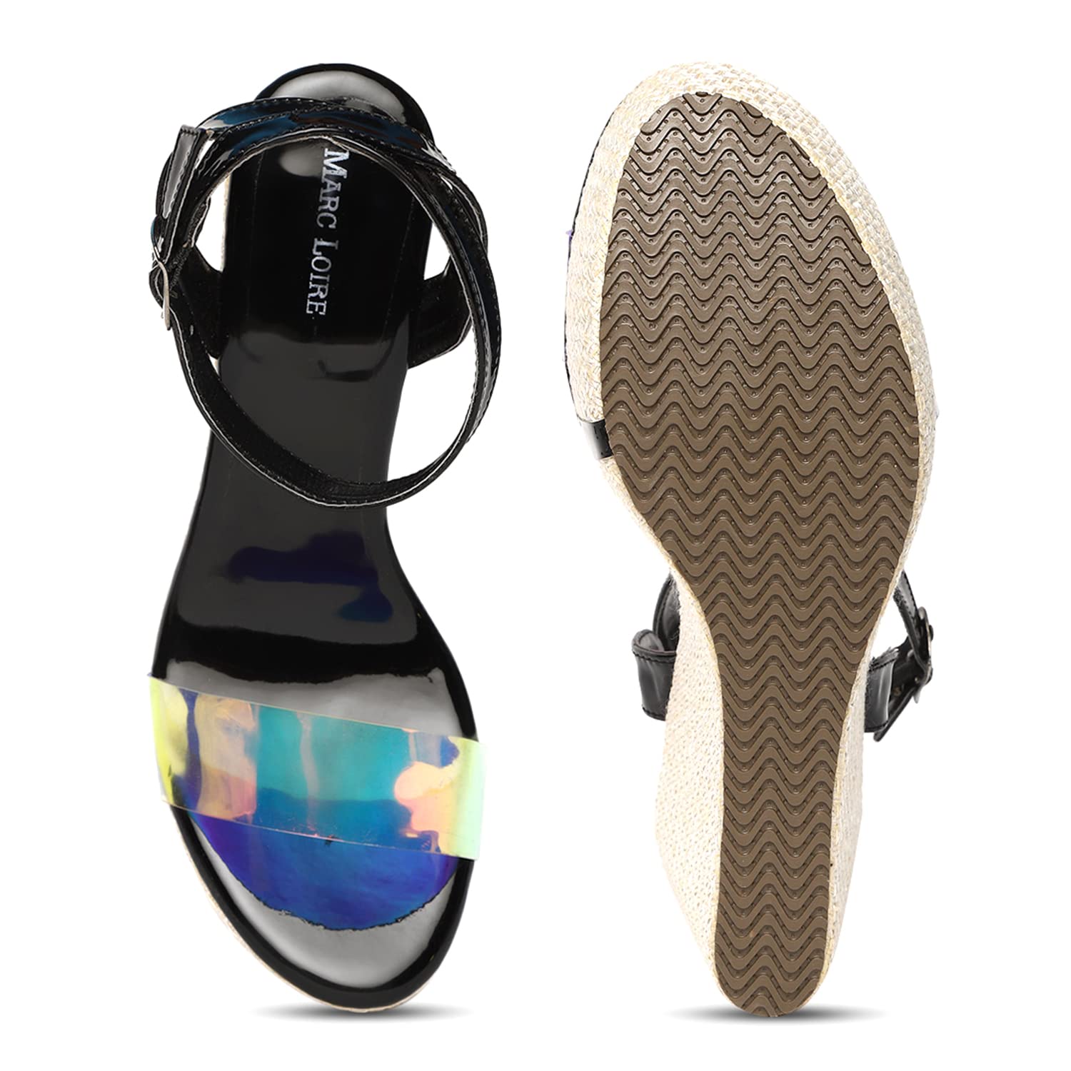 Marc Loire Women's Pair of Black Platform Wedges High Heel Fashion Sandal, UK 7