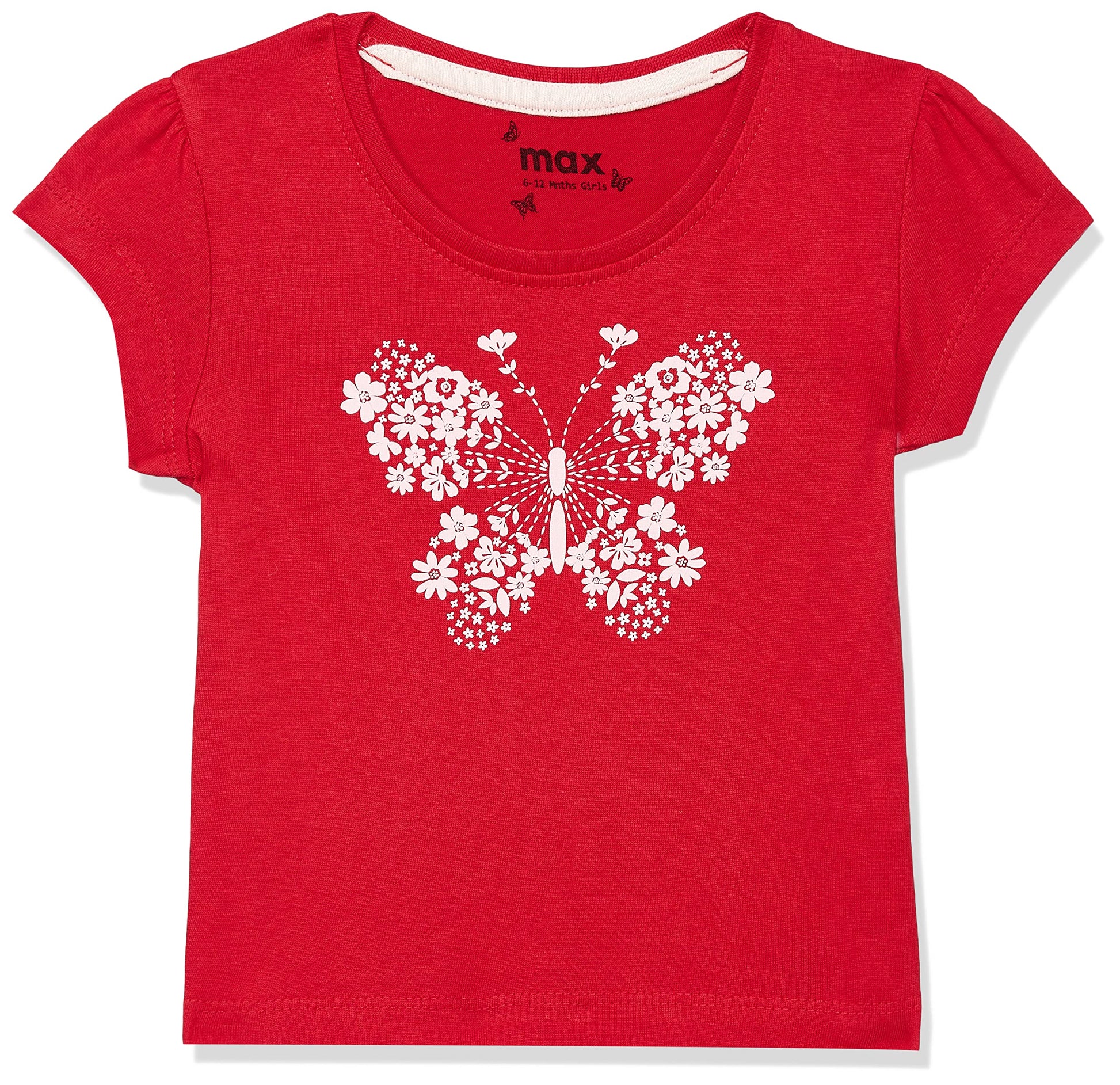 Max Girls Girls Printed Round Neck T-Shirt (M22ABT03RED_18-24M)
