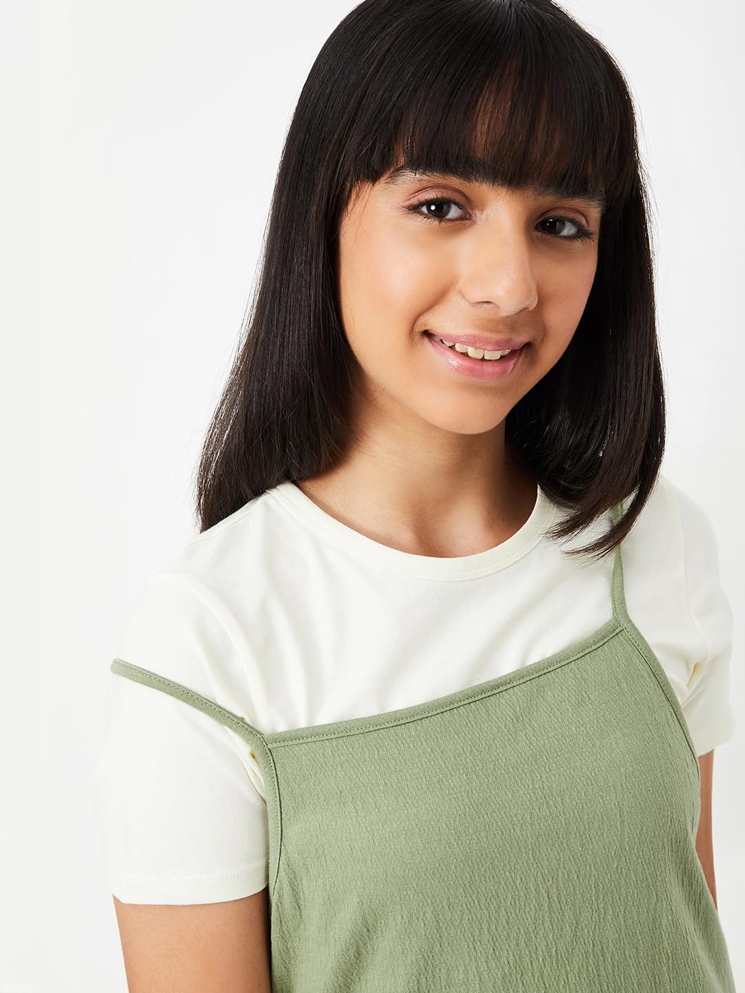 Max Girl's Pure Cotton A-Line Midi Dress (S25EDR11_Olive Green