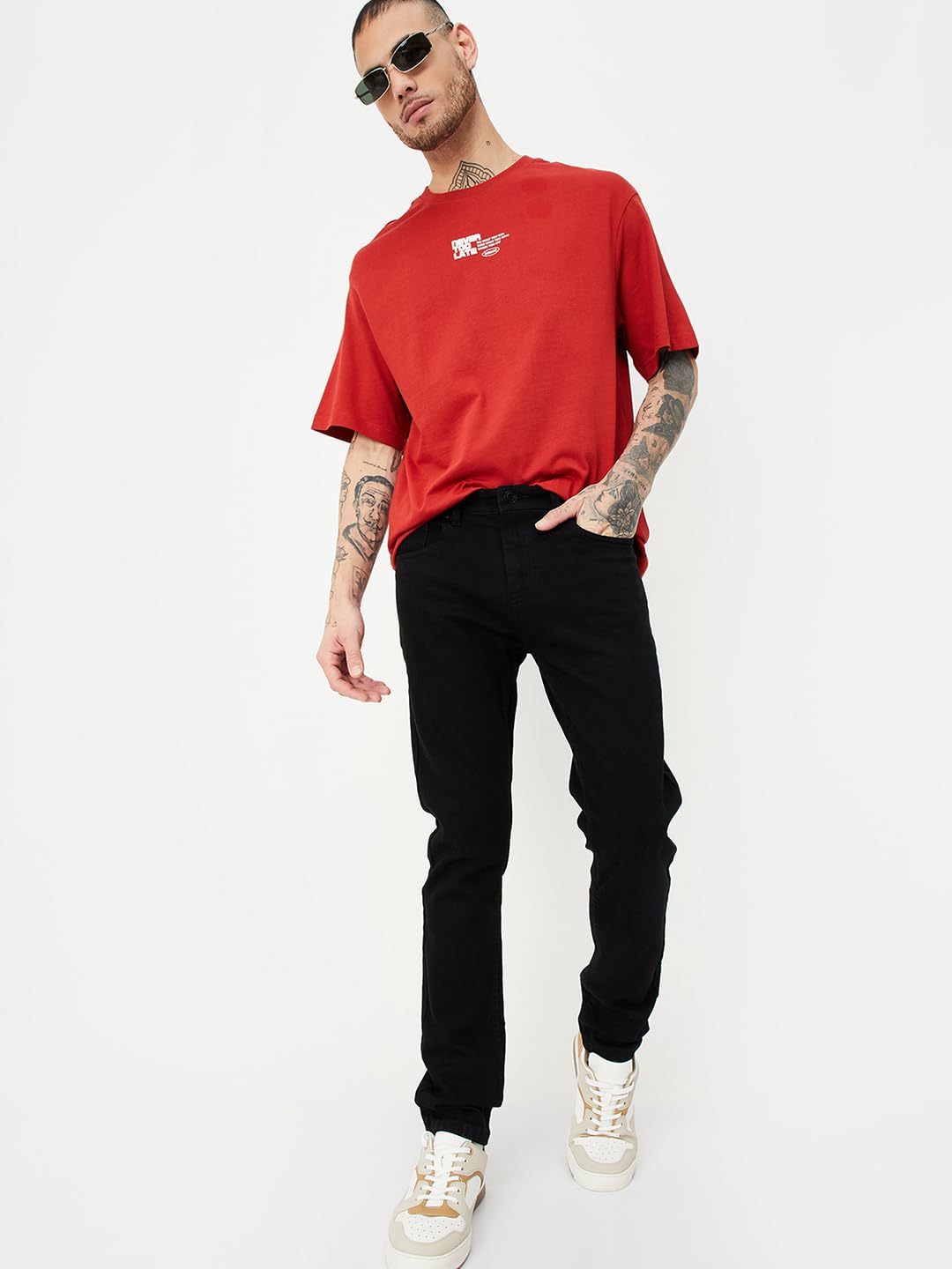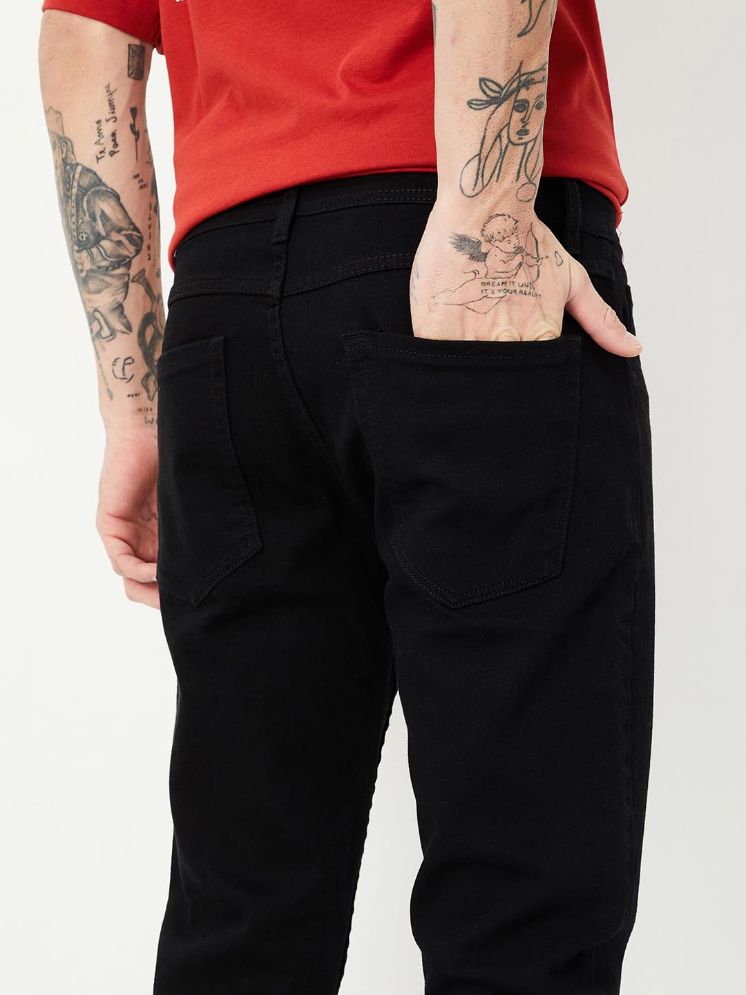 Max Men's Slim Fit Solid Cotton Blend Jeans Black