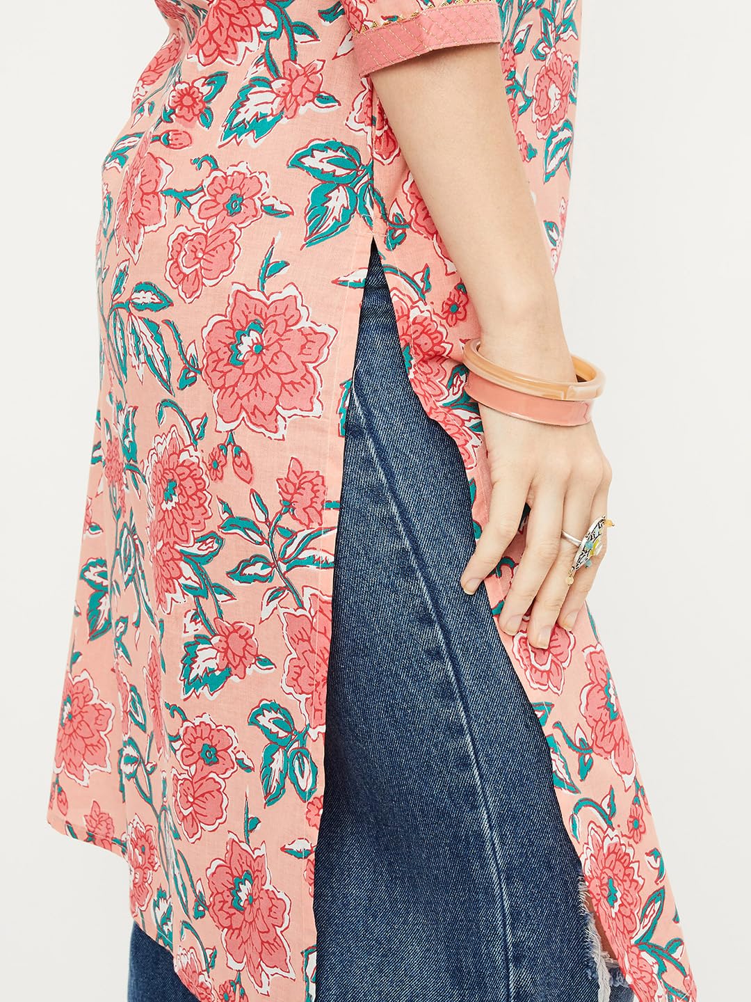 Max Women Cotton Printed Straight Regular Fit Kurta (Pkvi41001Pink)_L