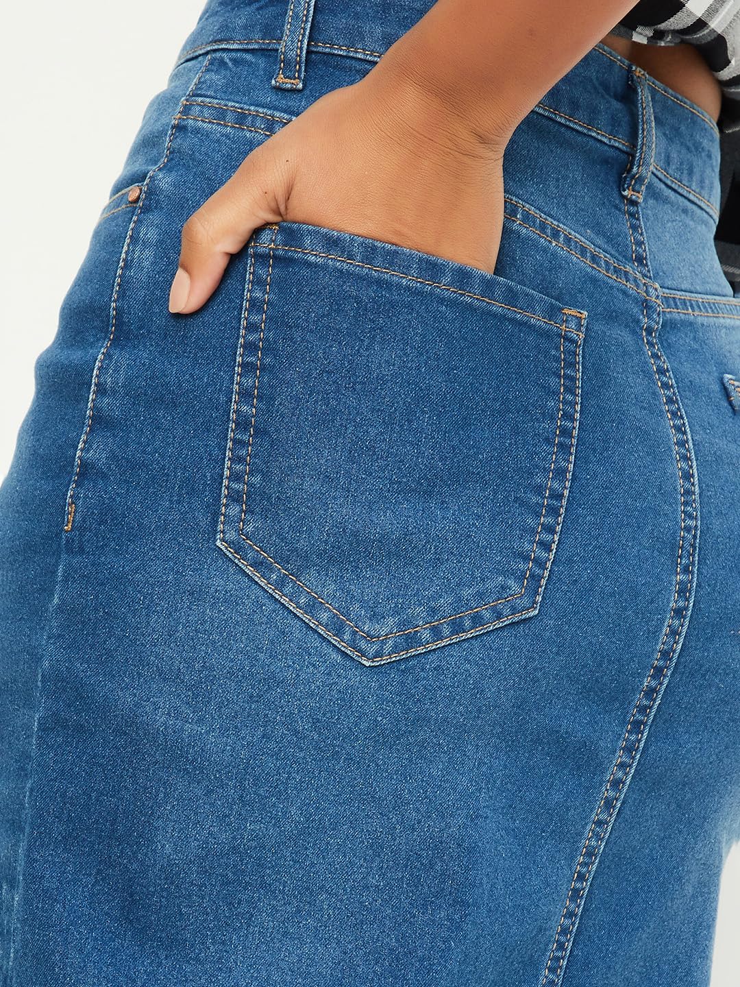 Max Women Washed Pencil Skirt (NR041DMID Blue)_36