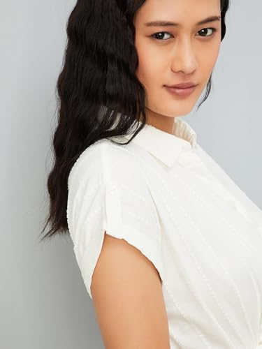Max Women's Cotton A-Line Below The Knee Dress (EC58002_Off White