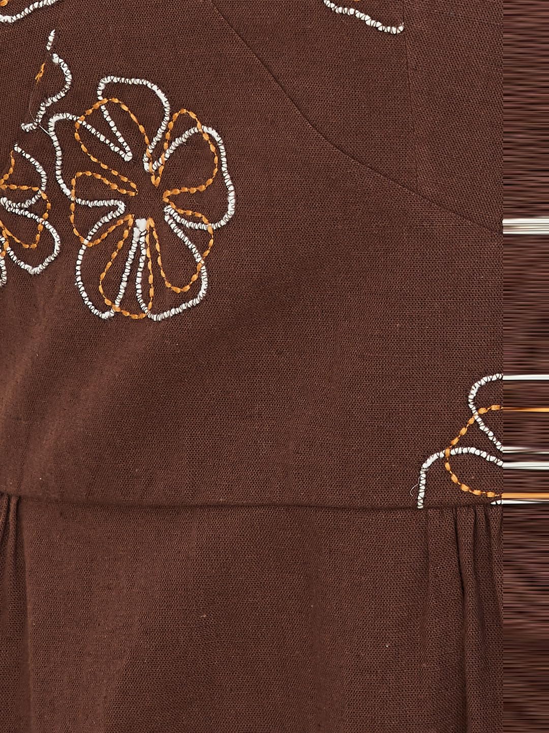 Max Women's Cotton A-Line Midi Casual Dress (EE54001_Dark Brown