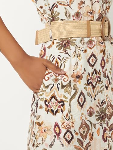 Max Women's Cotton Blend A-Line Below The Knee Dress (BOH15_Ecru