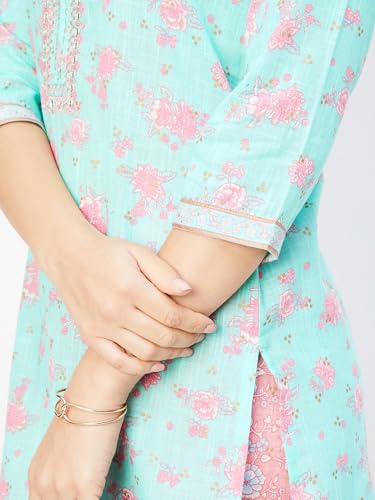 Max Women's Cotton Blend Kurta Set (CTKST42062BLUE_Blue