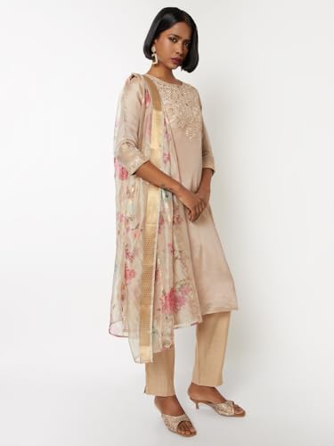 Max Women's Cotton Blend Kurta Set (CTKST55065_Beige