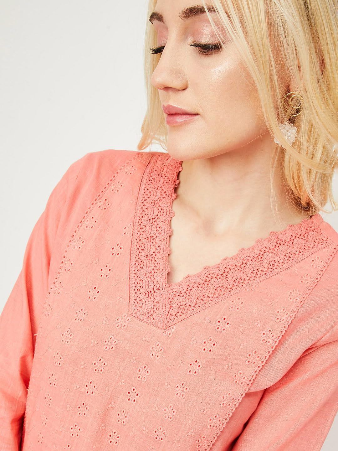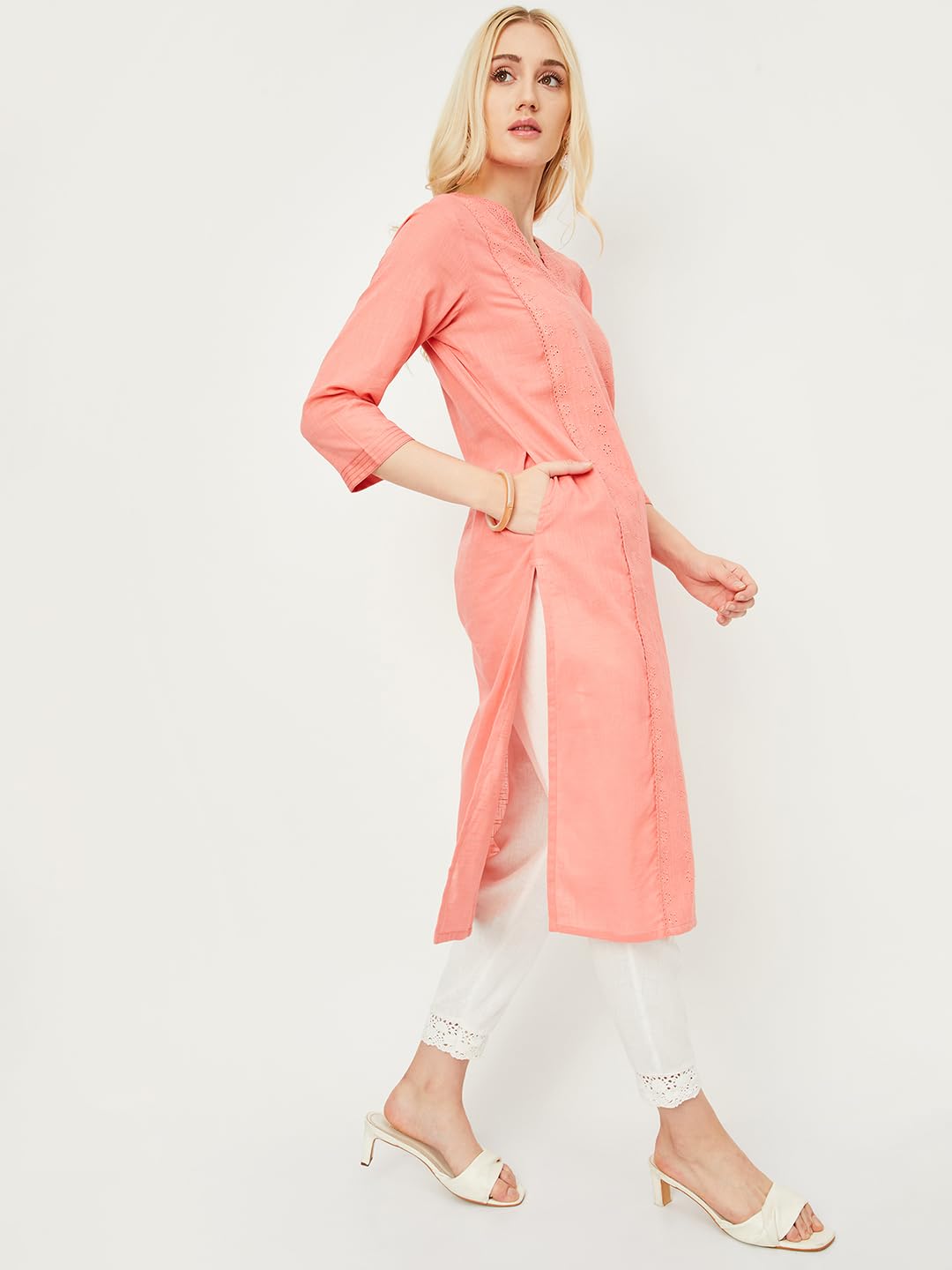 Max Women's Cotton Blend Regular Fit Kurta (DAWWSU24KO1_Pink_XL