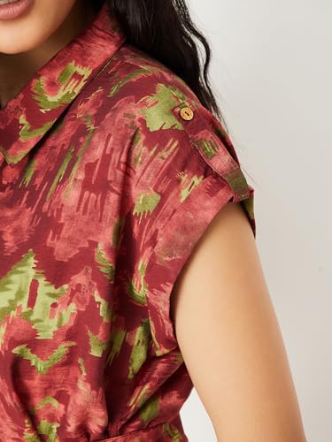 Max Women's Polyester A-Line Below The Knee Dress (EC58001_Rust