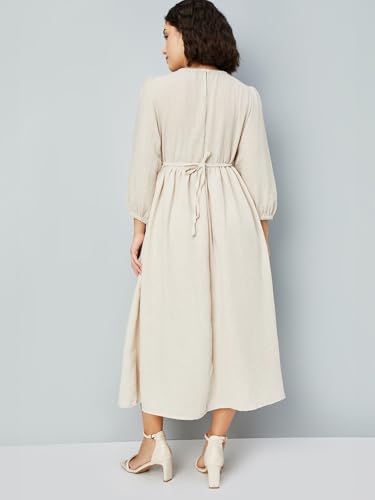 Max Women's Polyester A-Line Midi Dress (DTI3604_Beige