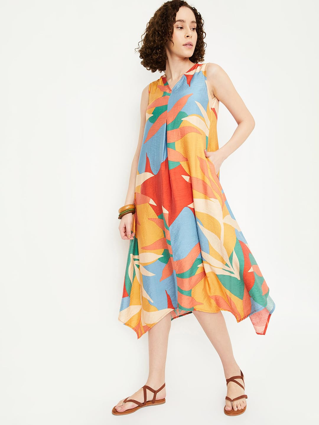 Max Women's Polyester Classic Midi Dress (MDDRS42014_Multi_M Multicolour