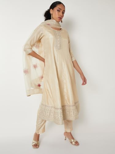 Max Women's Polyester Kurta Set (SRCTKST58015_Off White