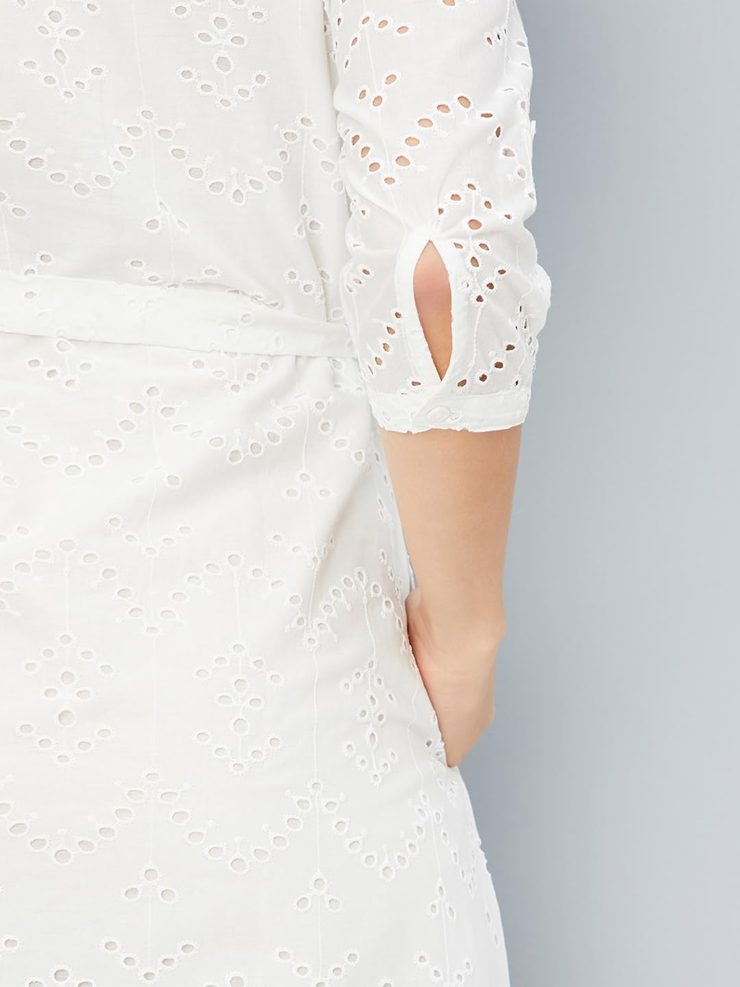 - Women Schiffli Embroidered Shirt Dress with Belt