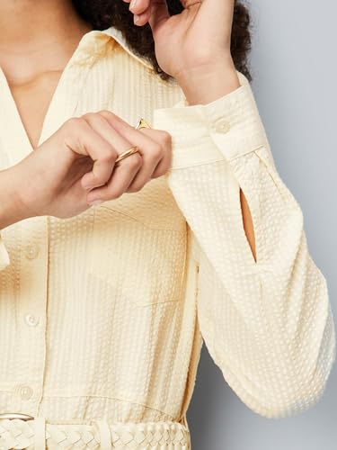 - Women Seersucker Belted Shirt Dress