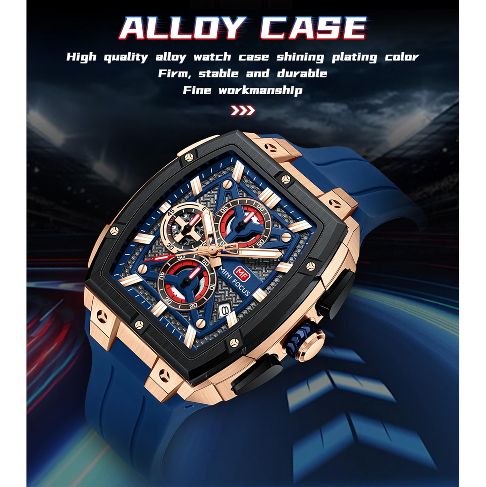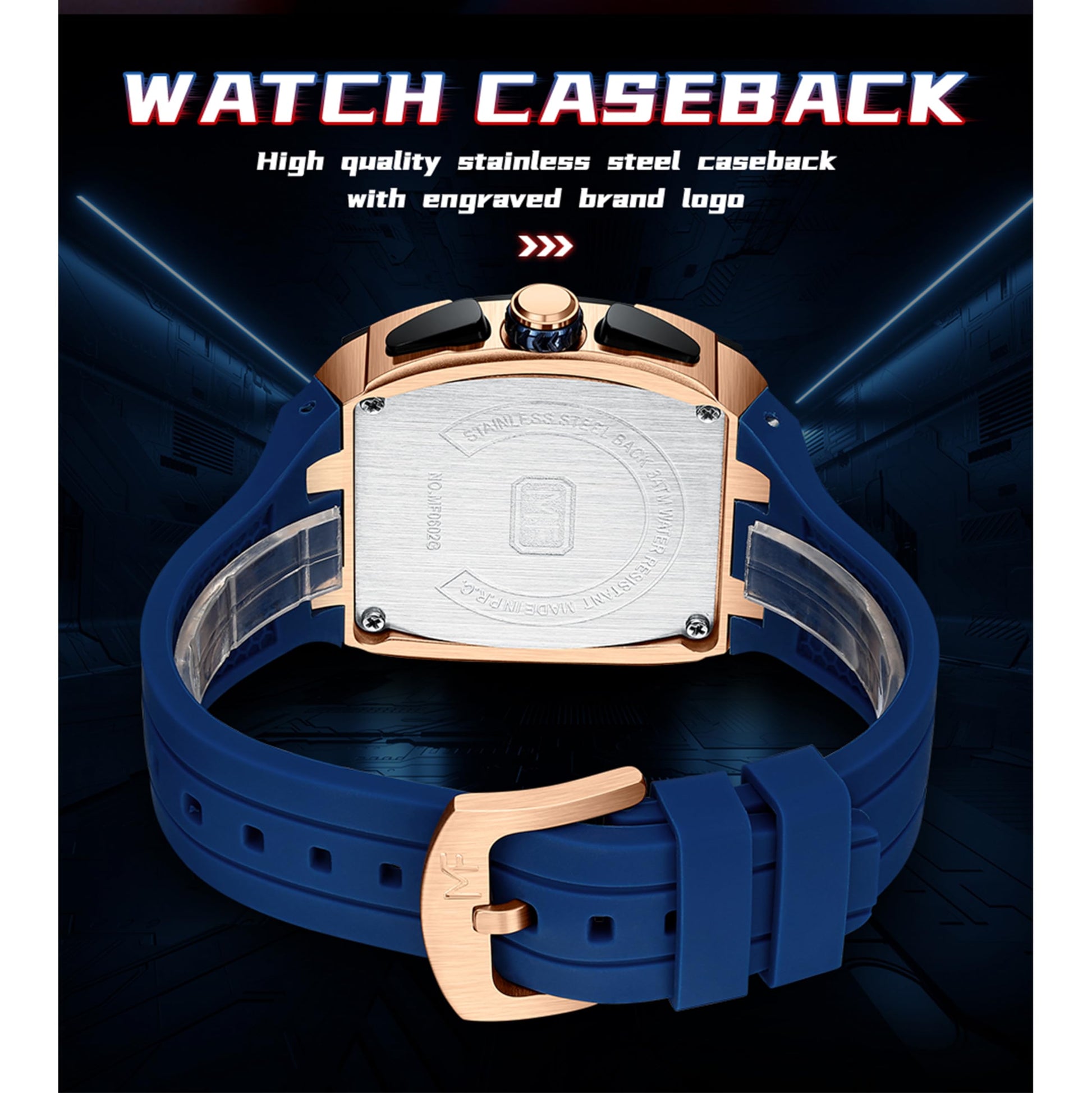 MF MINI FOCUS Men's Quartz Watch Wine Barrel Outdoor Style Curved Mirror Multi-Layer Hollow Men's Watch 0602G, Blue, Modern